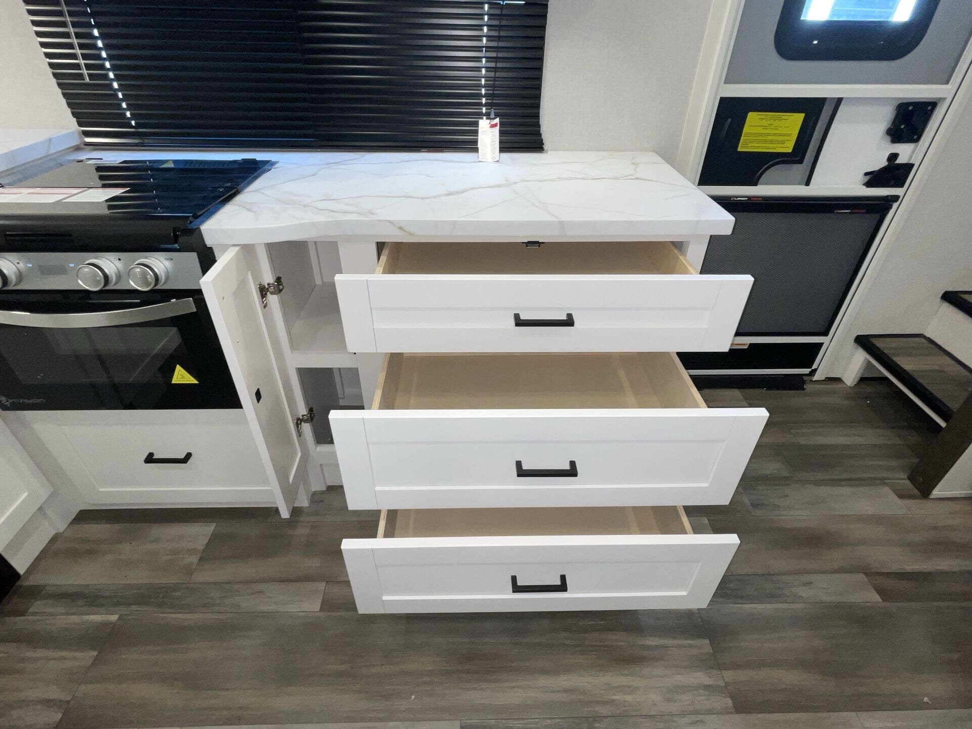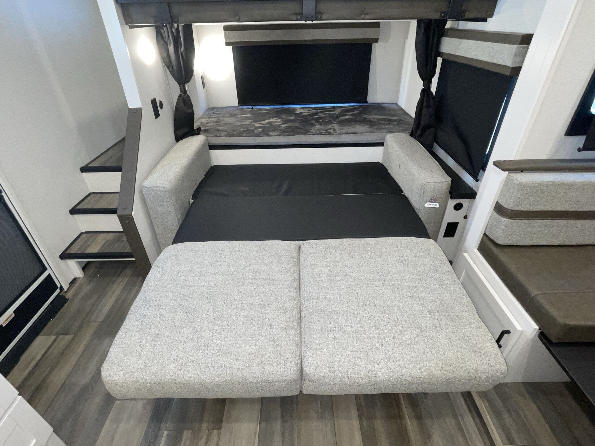 This new 2026 model boasts a clean, modern design with wide-open living spaces optimized for relaxation and socializing. The Open Range Roamer features a thoughtfully designed floor plan, the 274BHS, which maximizes interior space while maintaining a compact exterior footprint. Perfect for large families or groups, this fifth wheel comfortably sleeps multiple occupants, providing a cozy yet functional environment for extended travel adventures.
