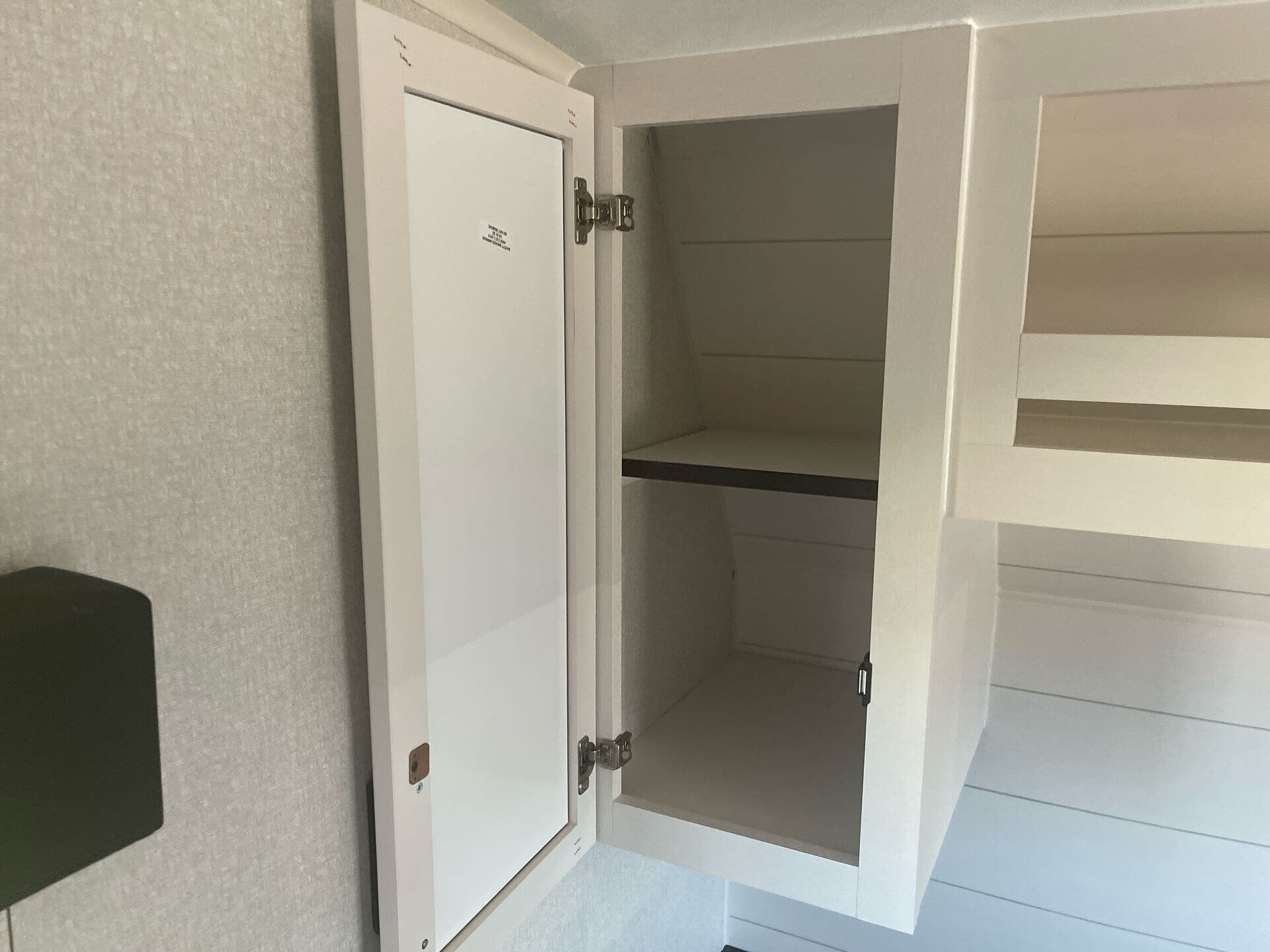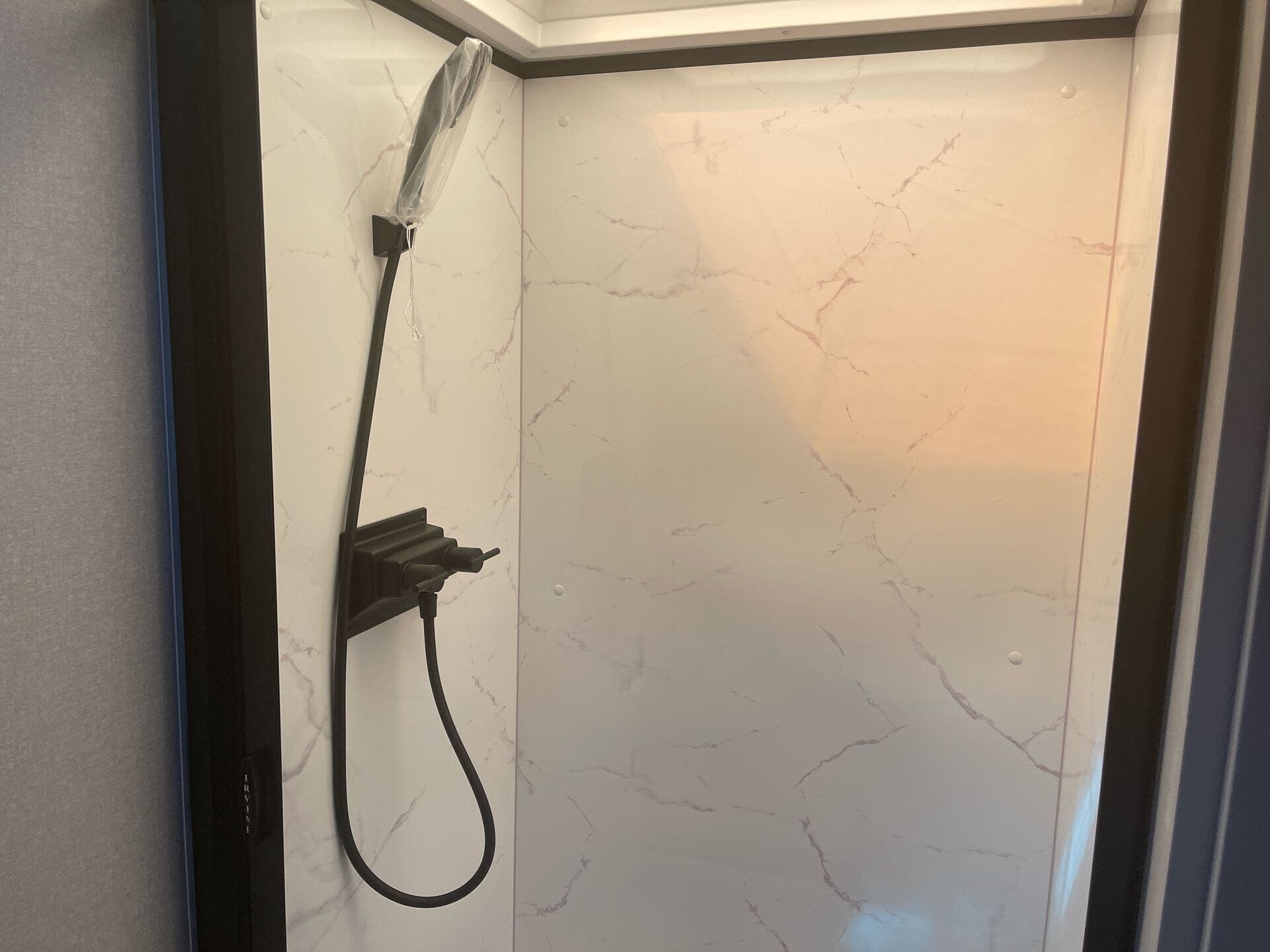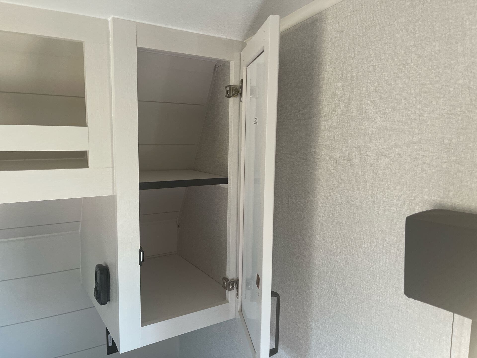 Hide-A-Bed, Medicine Cabinet, Pleated Shades, Queen Mattress, Shower, Theater Seating, Toilet -