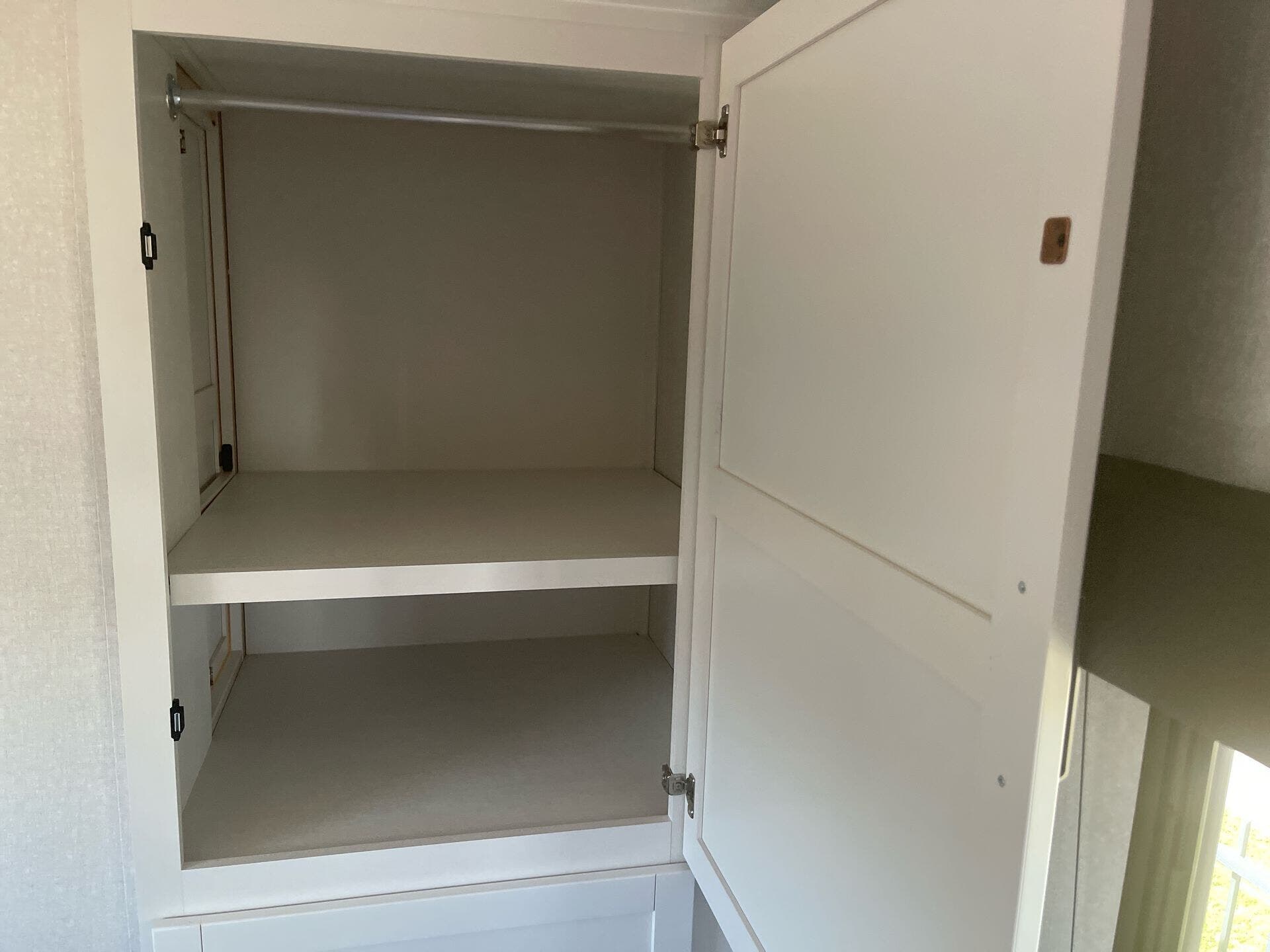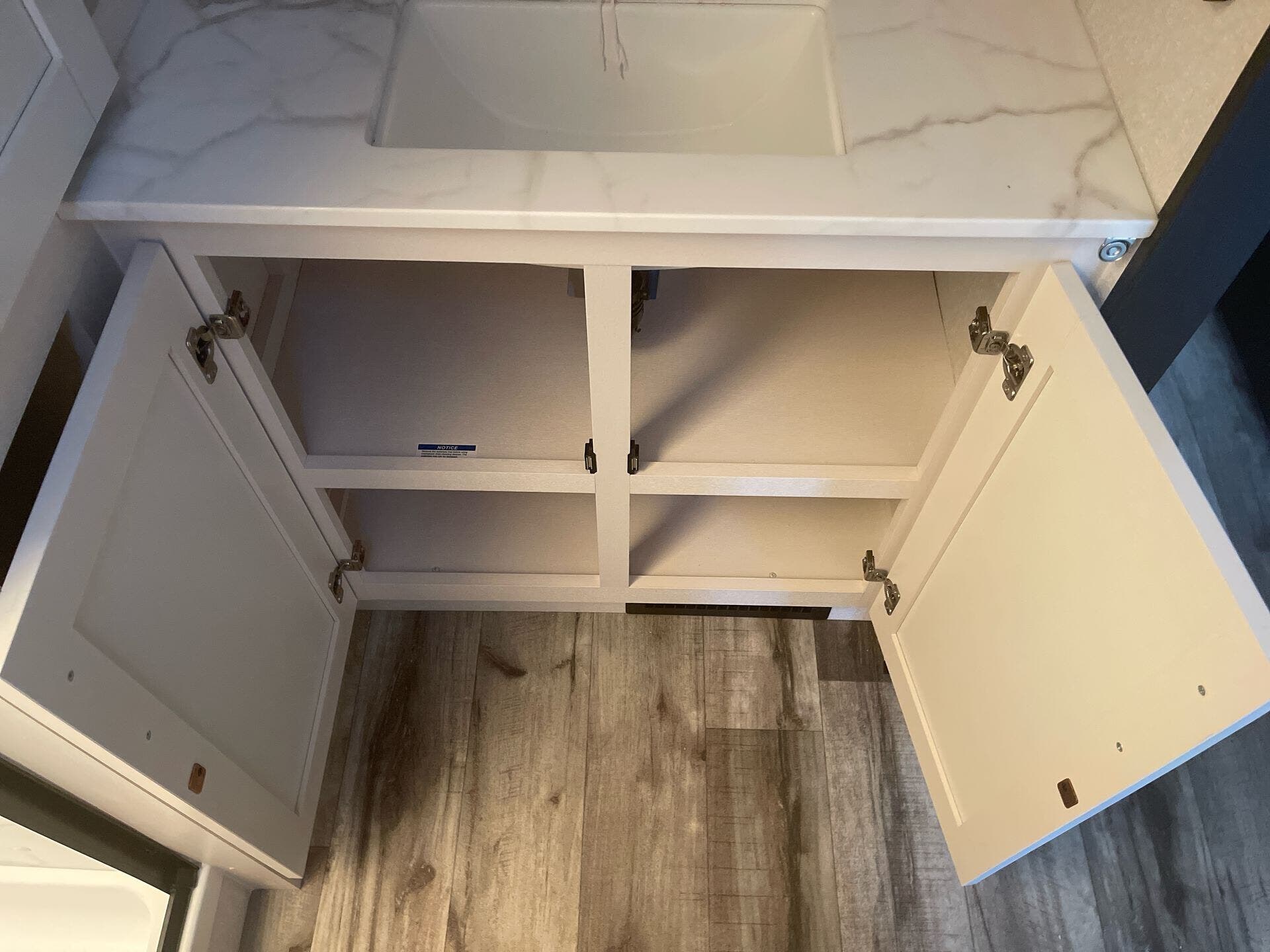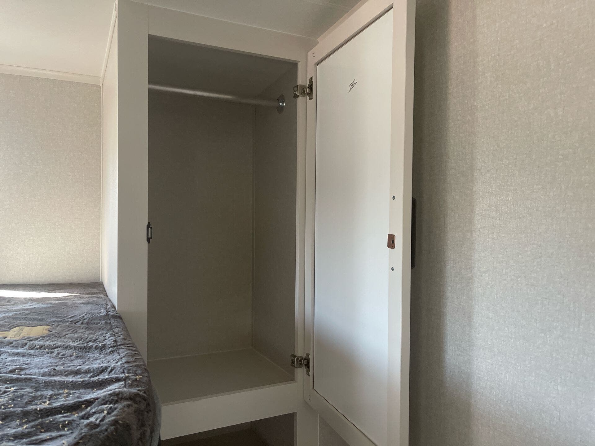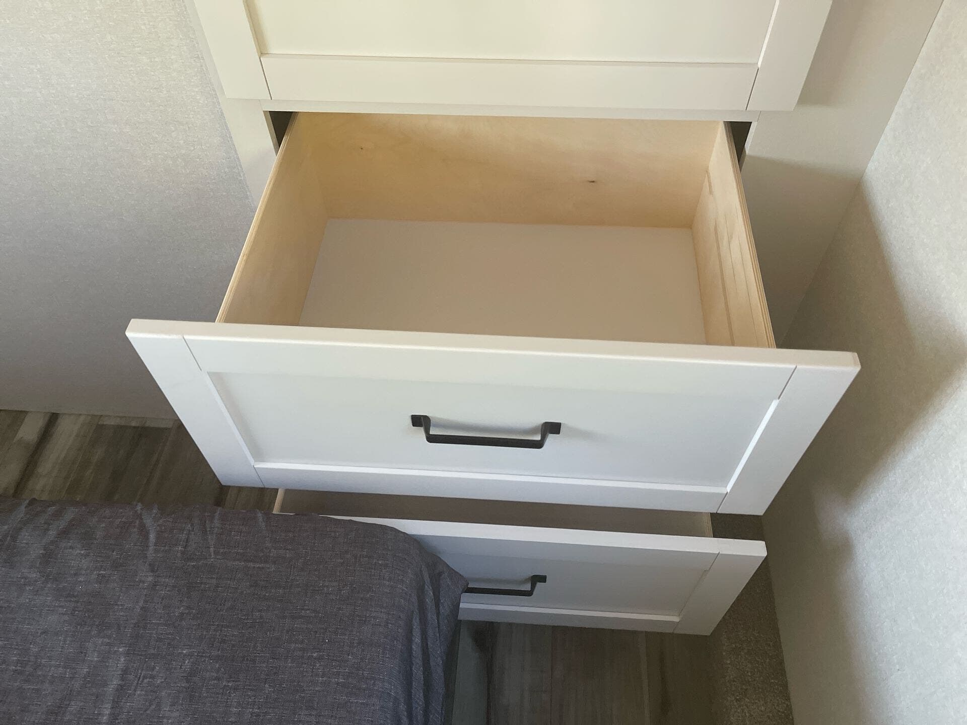 Hide-A-Bed, Medicine Cabinet, Pleated Shades, Queen Mattress, Shower, Theater Seating, Toilet -