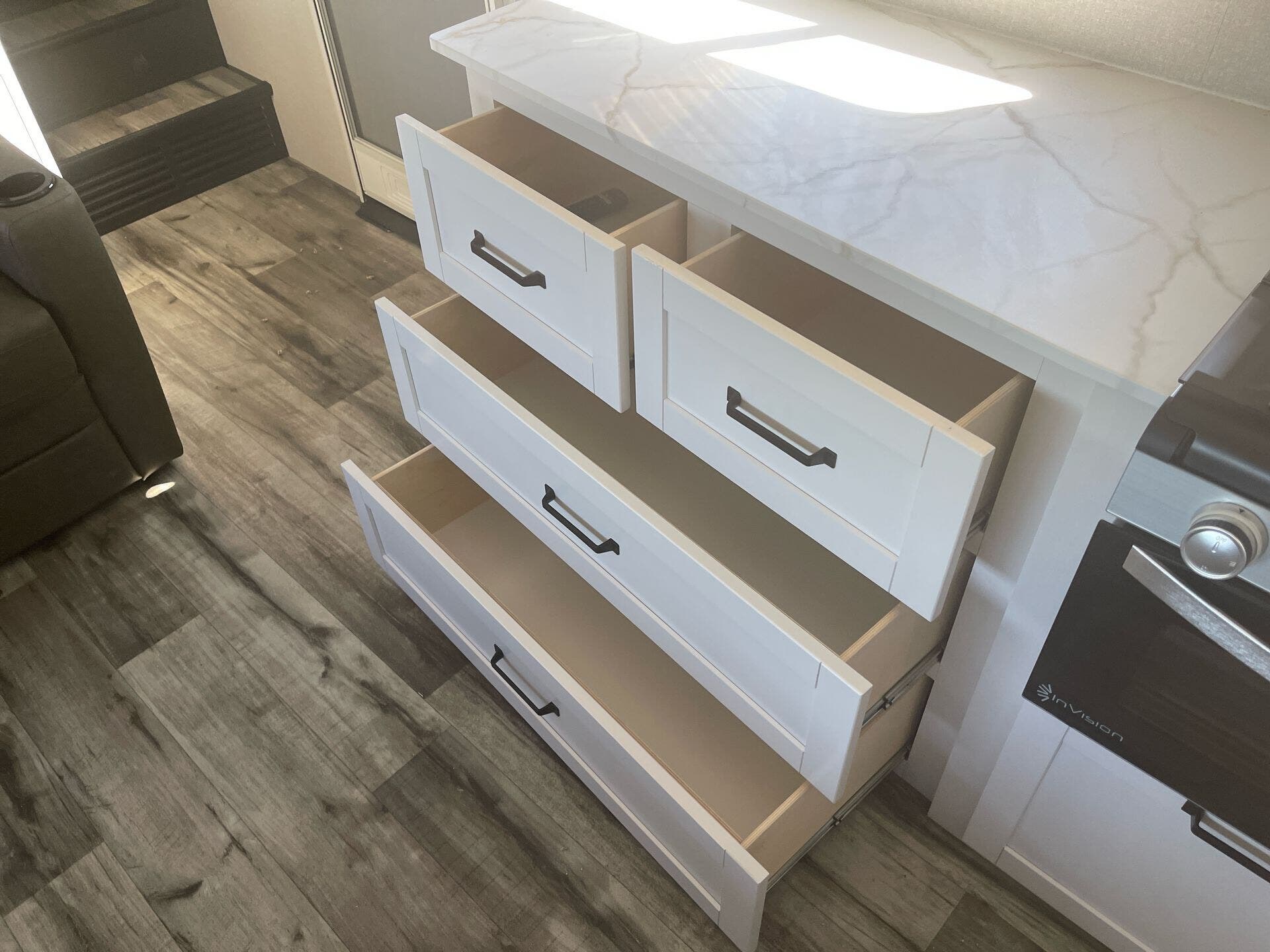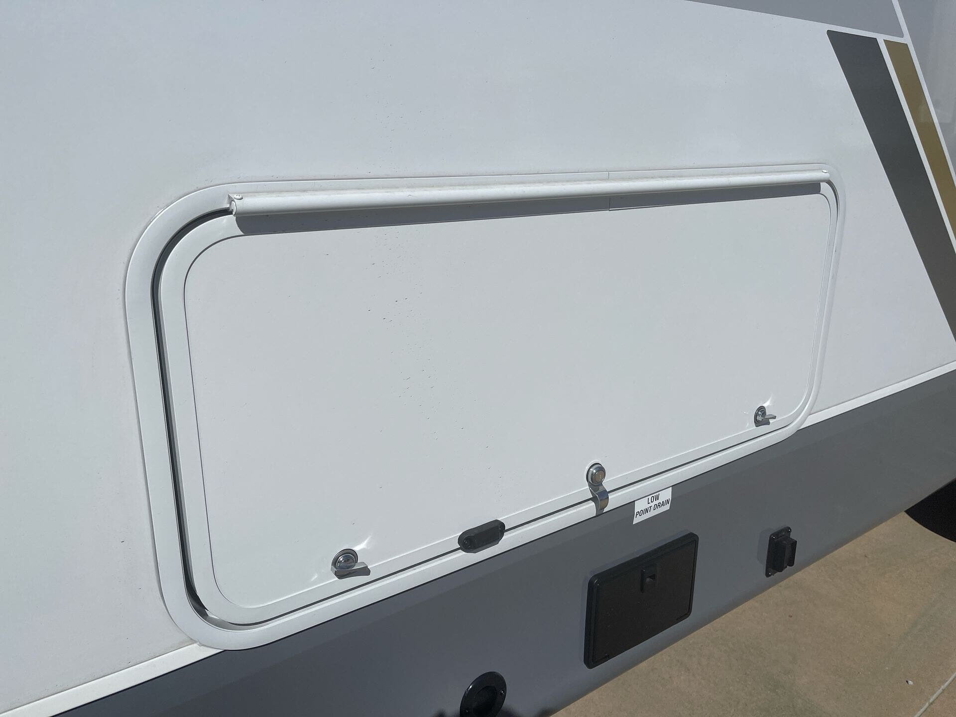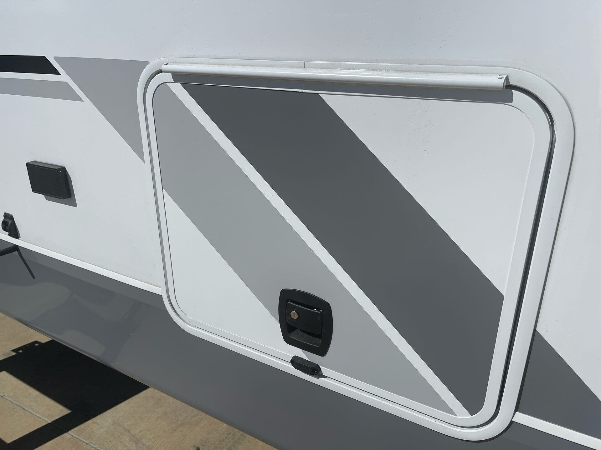 Awning, Black Tank Flush, Detachable, Detachable Power Cord, Griddle, Heated Underbelly, Ladder, Outside Kitchen, Roof Deck, Skylight, Slam Latch Baggage Doors, Stabilizer Jacks -