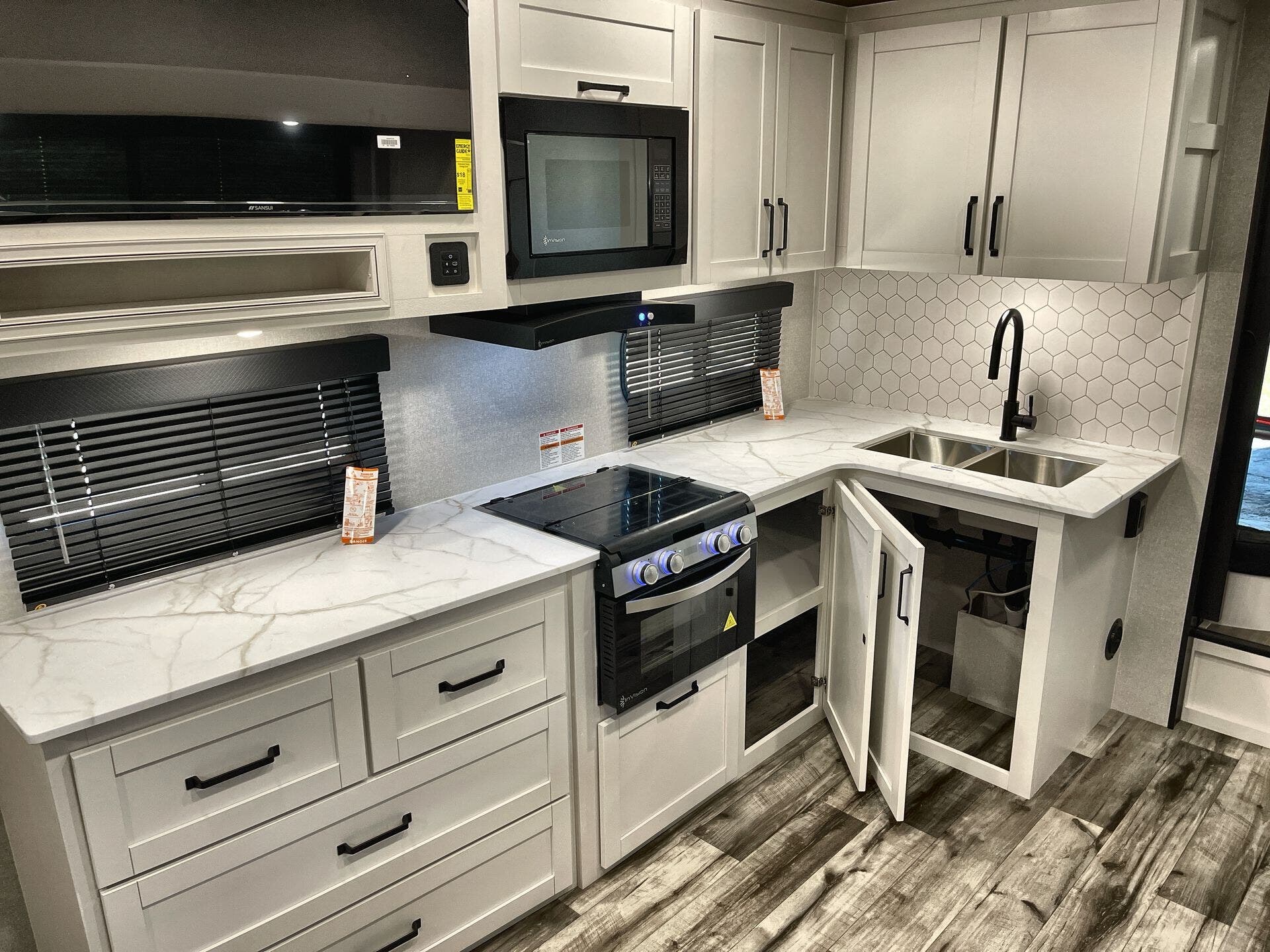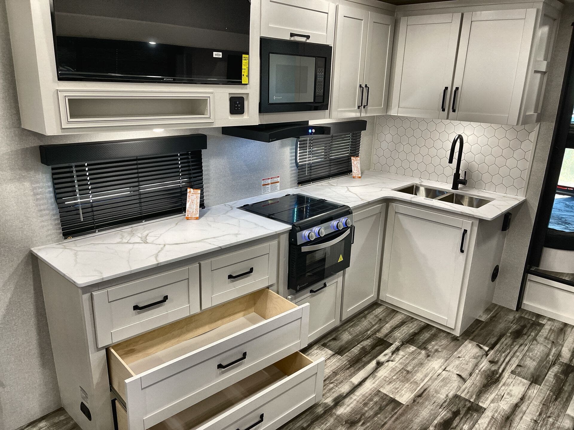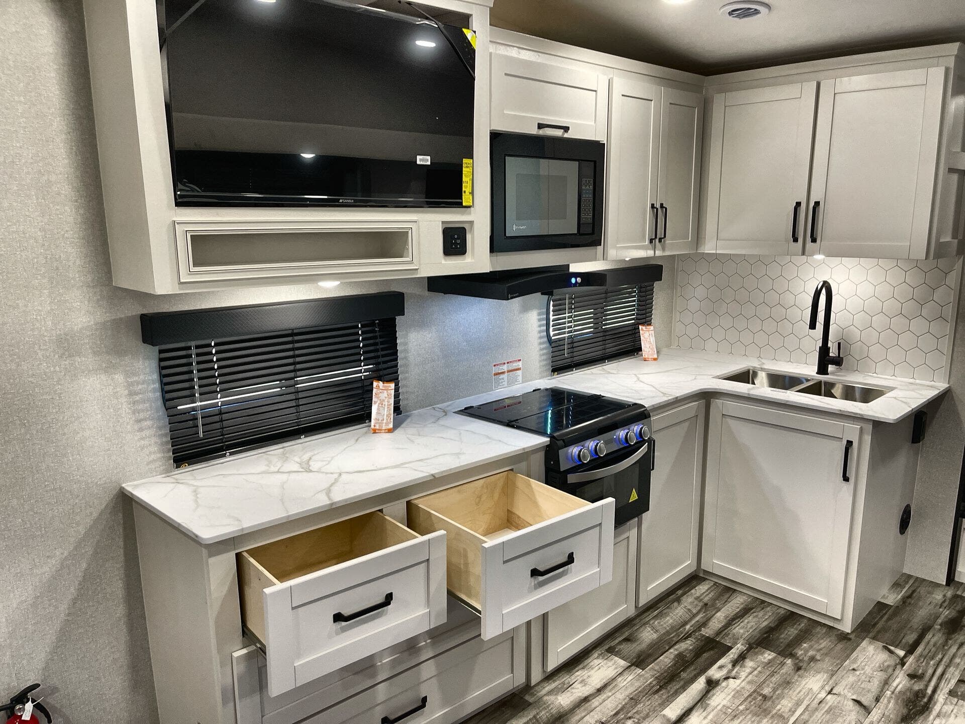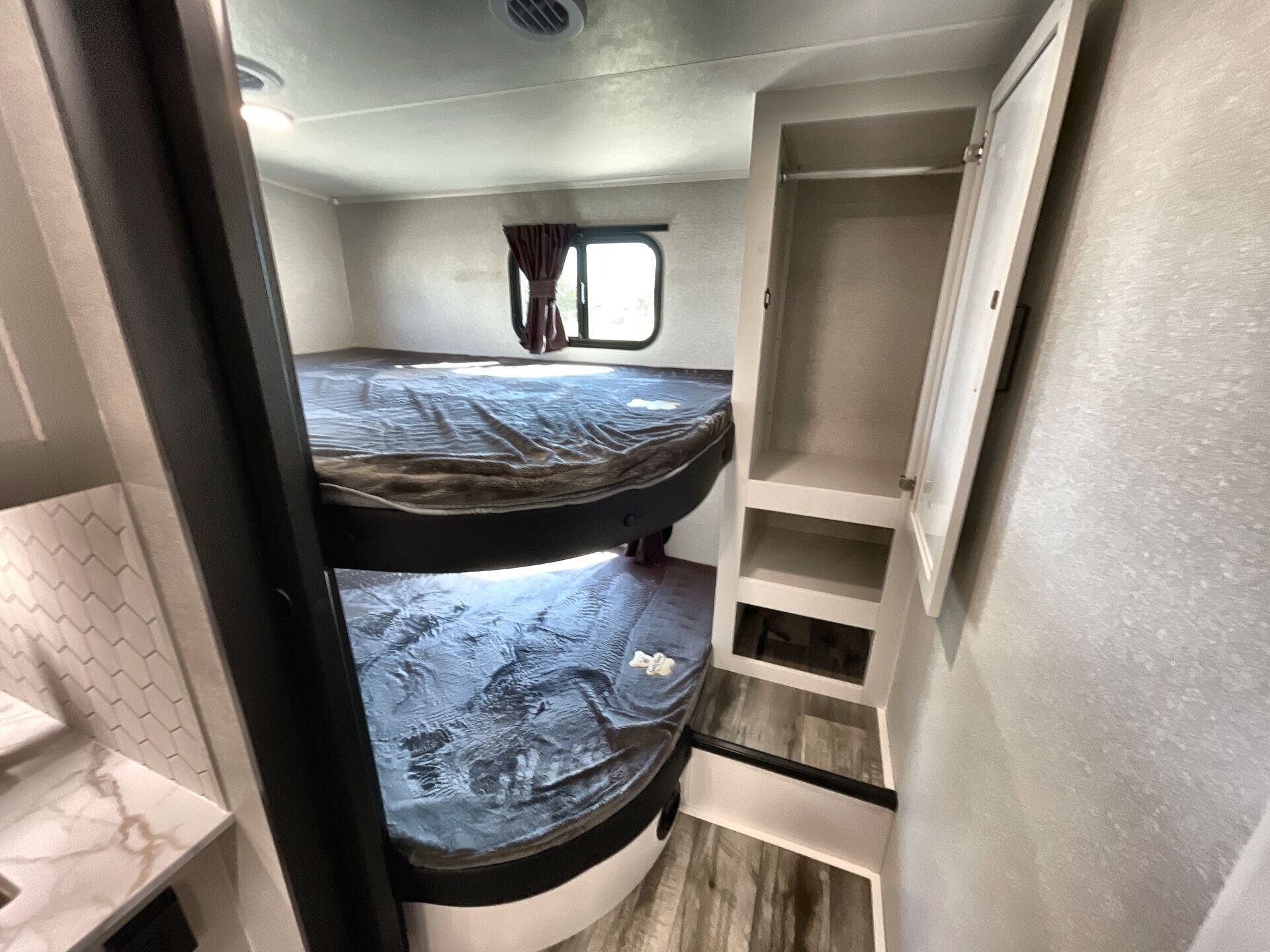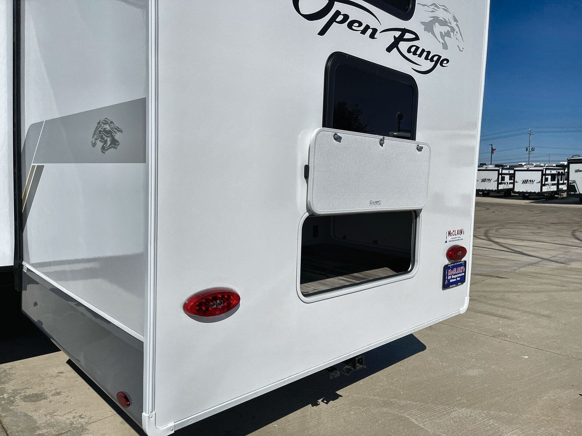 The Open Range Roamer delivers the reliability of a ready-to-tow fifth wheel with family-friendly amenities. Its bunk bed setup and front bedroom configuration make it ideal for households needing multiple sleeping areas, while the mid bath and rear living/entertainment layout maximize comfort on long trips. The thoughtfully equipped kitchen, durable cabinetry, and practical safety features ensure peace of mind on the road. With 51 gallons of fresh water and ample grey and black tank capacity, you’ll enjoy extended stays without frequent stops, and the single slide-out enhances living space without compromising towability. This model is perfect for campers seeking a modern, versatile, and dependable travel trailer experience in a true recreational vehicle you can rely on for weekend getaways and longer excursions alike.