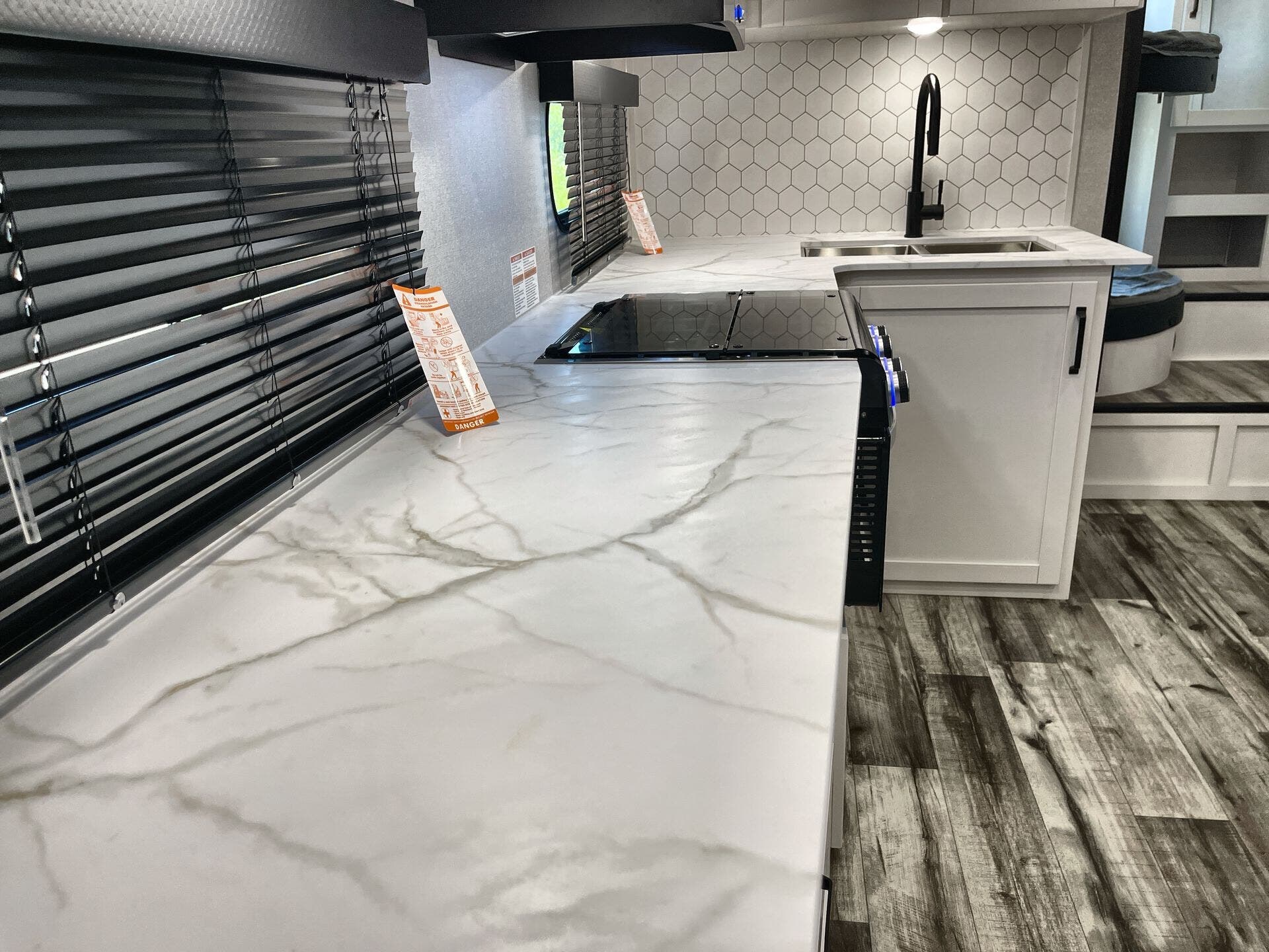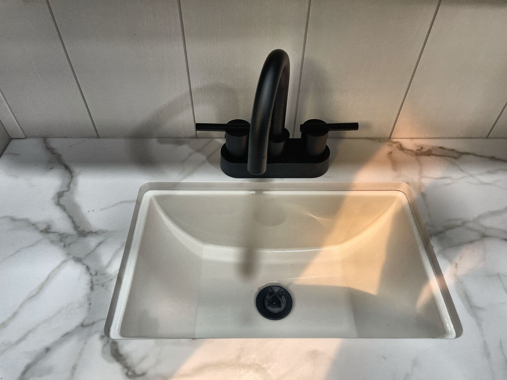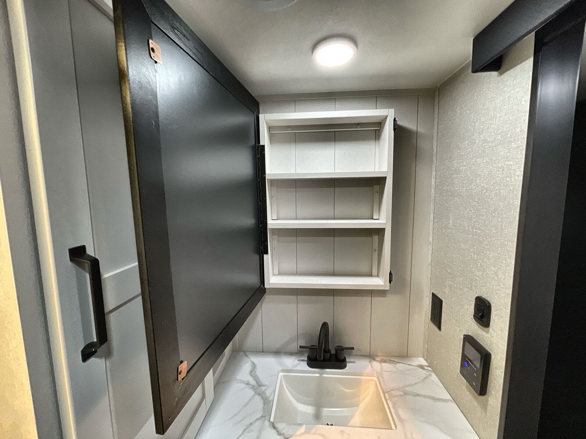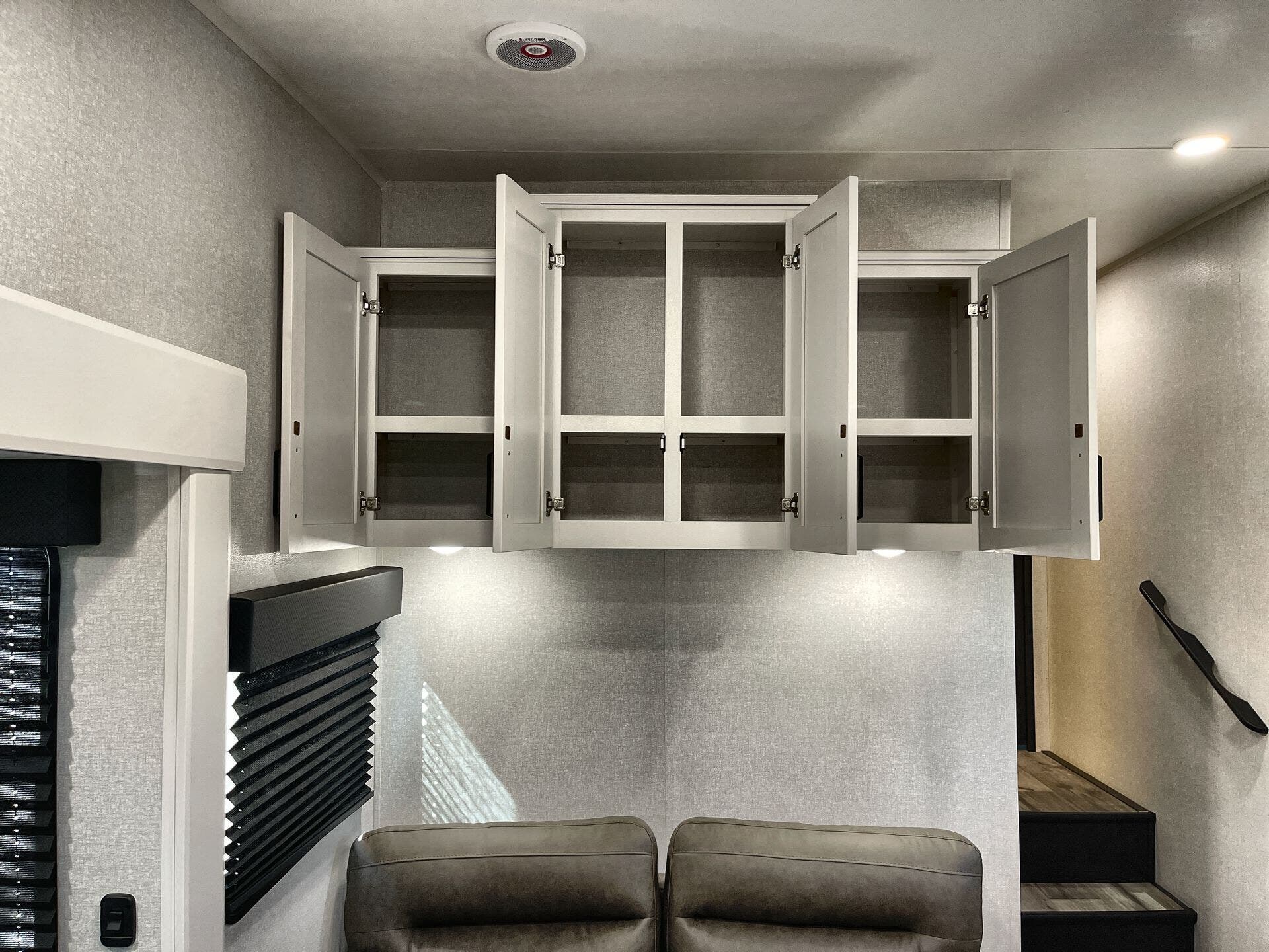 - Overhead Cabinetry, Kitchen Sink, Shower, and Toilet for everyday convenience