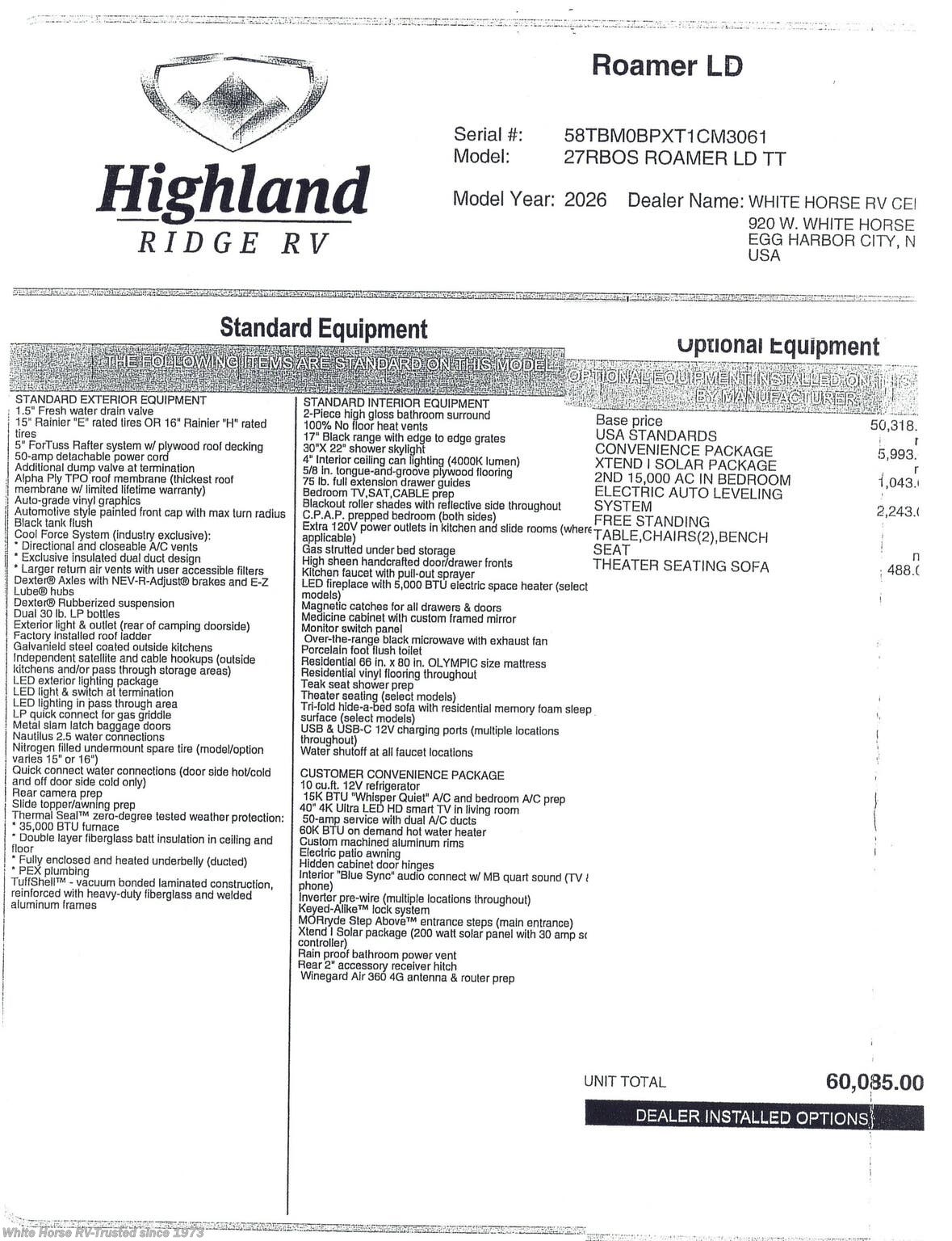 This 2026 Highland Ridge Open Range Roamer Light Duty 27RBOS is outfitted with all the features you need for happy camping. Ready to be a proud Highland Ridge owner? This 2026 Highland Ridge Open Range Roamer Light Duty 27RBOS is the perfect fit. The sleep capacity allows you to bring up to 4 along on your travels in this rig. Setup is a breeze thanks to one roomy slide. Cook up the best camping meals with appliances like the fridge. Kick back and relax in the living area with the theater seating and , or TV. Traveling couples love this rig thanks to the hide-a-bed. You’ll never get too hot or too cold inside your rig thanks to the heating option. The 52 gallon fresh water tank is just right for easy RV traveling. Outside, you’ll find awning, black tank flush, detachable, detachable power cord, griddle, heated underbelly, hitch, ladder, outside kitchen, roof deck, skylight and slam latch baggage doors. The outside kitchen keeps your rig from overheating at meal time.