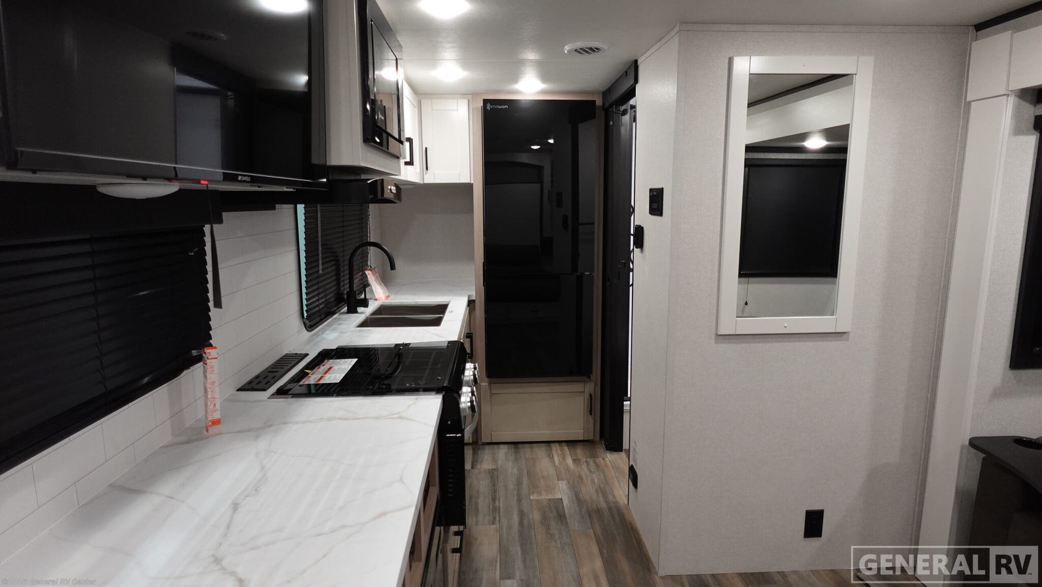 Step into the world of adventure with the Open Range Range Lite, a travel trailer that combines style, comfort, and functionality. Its sleek exterior is designed to turn heads on the road and blend seamlessly into any campsite. The aerodynamic front cap not only enhances fuel efficiency but also adds a touch of sophistication to your travels. Designed for both comfort and adventure, the Range Lite Travel Trailer is an ideal choice for couples or families. Every model comes equipped with the Xtend Solar 1 Package, featuring a 200-watt solar panel and 30-amp controller, giving you the power to keep the lights and refrigerator running off-grid. Inside, you’ll find a 60 x 76 in. in murphy bed that folds away into a space-saving jack-knife sofa during the day, and a fully equipped kitchen with a 12V refrigerator and freezer, a 3-burner range with a 17" oven, and a flush-mount glass cover that adds valuable counter space when not in use. Ample cabinetry ensures you have all the storage you need for your culinary adventures. New for 2026, an on-demand tankless water heater delivers endless hot water at the campsite. After a long day of adventuring, clean up in the full bathroom with 30x36" shower! The living area is both cozy and functional, with plush seating that invites you to relax after a day of exploration. Large windows with black-out shades allow you to control the natural light, ensuring privacy and comfort. No matter what the wather outside, the 15' awning beckons you and your friends to pull up a chair and chill, with drink in hand. Whether you're planning a weekend getaway or an extended road trip, the Open Range Range Lite is your perfect companion. For more details, visit your nearest General RV dealership and experience it for yourself!