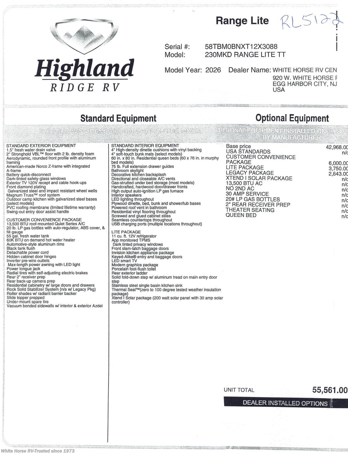 Request More Info on this 2026 Highland Ridge Range Lite 230MKD Offered for sale by White Horse RV Center
