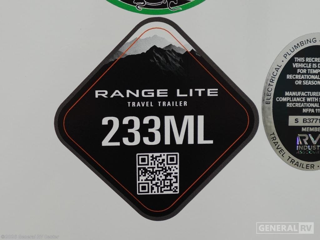 Highland Ride RV Range Lite travel trailer 233ML highlights: Rear Kitchen Front Bedroom Dual Entry Doors Outside Storage Docking Station It is easy to enter and exit this travel trailer with the dual entry doors! One of the entrances leads directly into the front private bedroom which has a queen bed with wardrobes on either side, and the other entrance leads into the rear kitchen where you can prepare your best home cooked meals. Enjoy your meals at the booth dinette then play a card game or relax on the tri-fold sofa. Rinse the sand out of your hair with the shower in the full bathroom and keep your towel close by with the linen closet. Enjoy your beautiful scenery rain or shine as you relax in a chair underneath the 21' power awning! Each one of these Highland Ridge RV Range Lite travel trailers maximize their interior space while staying lightweight thanks to the TuffShell fiberglass walls! The residential floor slides create more interior space, and the residential vinyl flooring throughout makes them kid and pet friendly. A few construction features you will appreciate include a fully-walkable roof, a thermal seal which means the underbelly is enclosed, heated, and insulated, and a fully insulated roof with a PVC roofing membrane. Plus, there is an exterior grill hookup quick connect port, self-adjusting electric brakes to help you safely arrive, and an oversized pass-through storage area with motion lighting. Each model also includes the Xtend Solar I Package with a 200 watt solar panel with a 30 amp solar controller so boondocking is easier than ever.