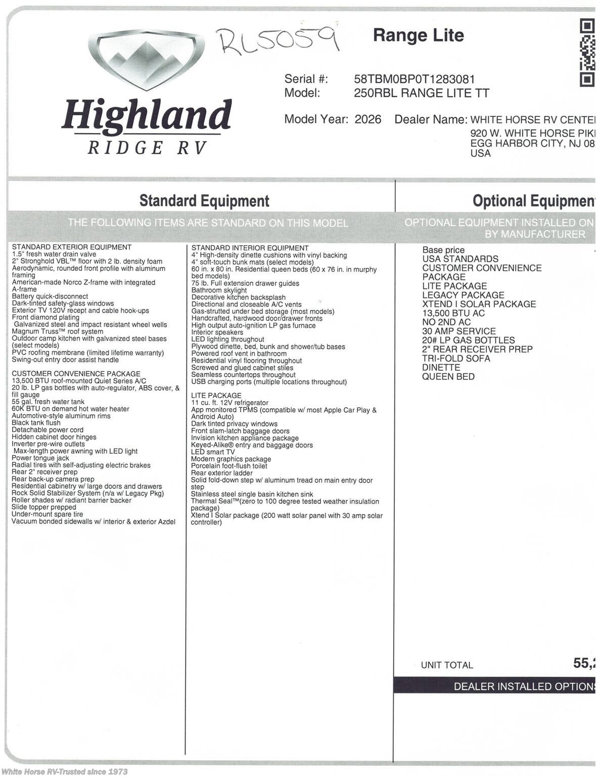 Request More Info on this 2026 Highland Ridge Range Lite 250RBL Offered for sale by White Horse RV Center