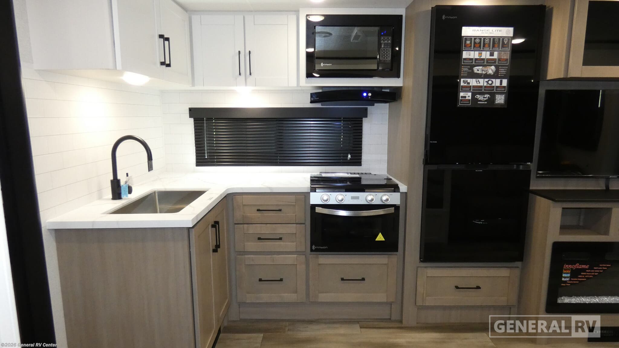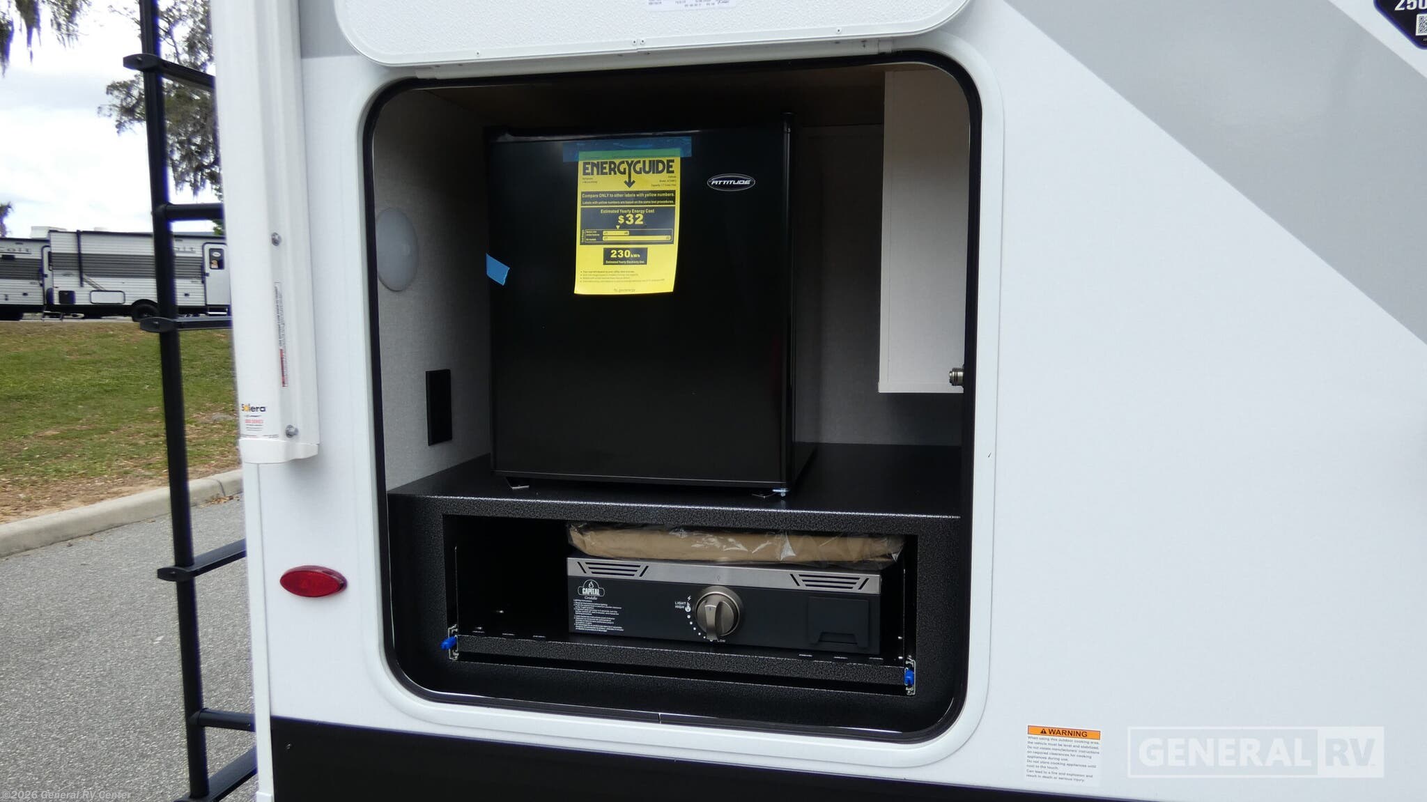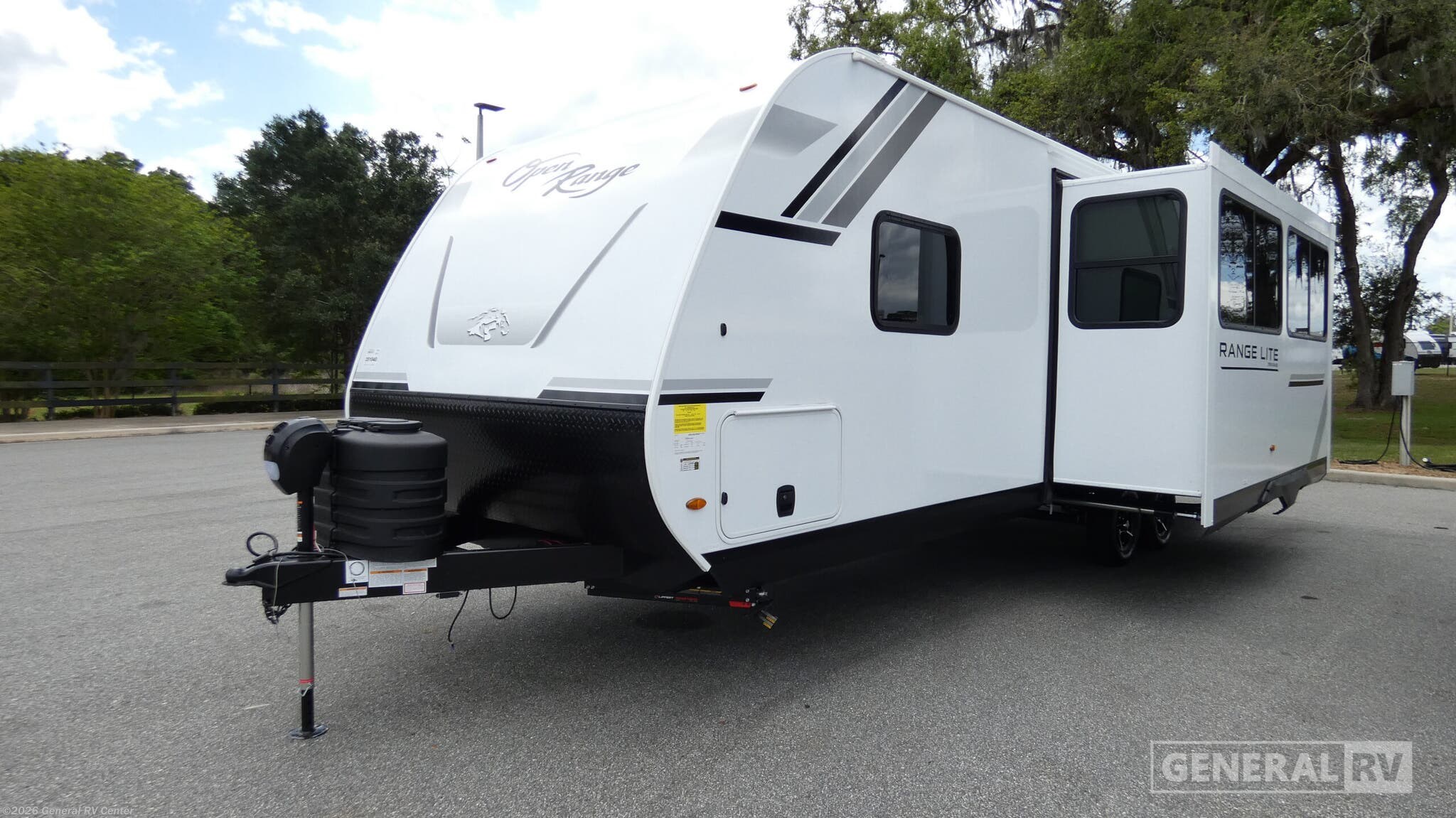 Embrace the open road with the 2026 Highland Ridge Range Lite 250RBL, a perfect blend of style and functionality. This RV is designed to comfortably accommodate up to six people, making it an ideal choice for family adventures or getaways with friends. At 30 feet in length, its spacious interior features a cozy queen bed flanked by convenient nightstands, ensuring restful nights after a day of exploration. The single slide-out expands your living space, revealing a welcoming area complete with a tri-fold sofa and a dinette, perfect for dining or relaxing by the entertainment center with a charming fireplace. The Range Lite 250RBL is equipped with a well-appointed kitchen, featuring a refrigerator and microwave, and an impressive walk-in pantry to store all your culinary essentials. For those who love outdoor cooking, the exterior kitchen with a pull-out griddle and fridge is a delightful addition, all under a large 19-foot awning that provides ample shade. The bathroom is thoughtfully designed with a 30” x 36” shower, ensuring comfort and convenience. Built on a robust American-made Norco Z-frame chassis, this RV promises durability and a smooth ride. Visit your nearest General RV dealership to discover more about this exceptional travel companion.
