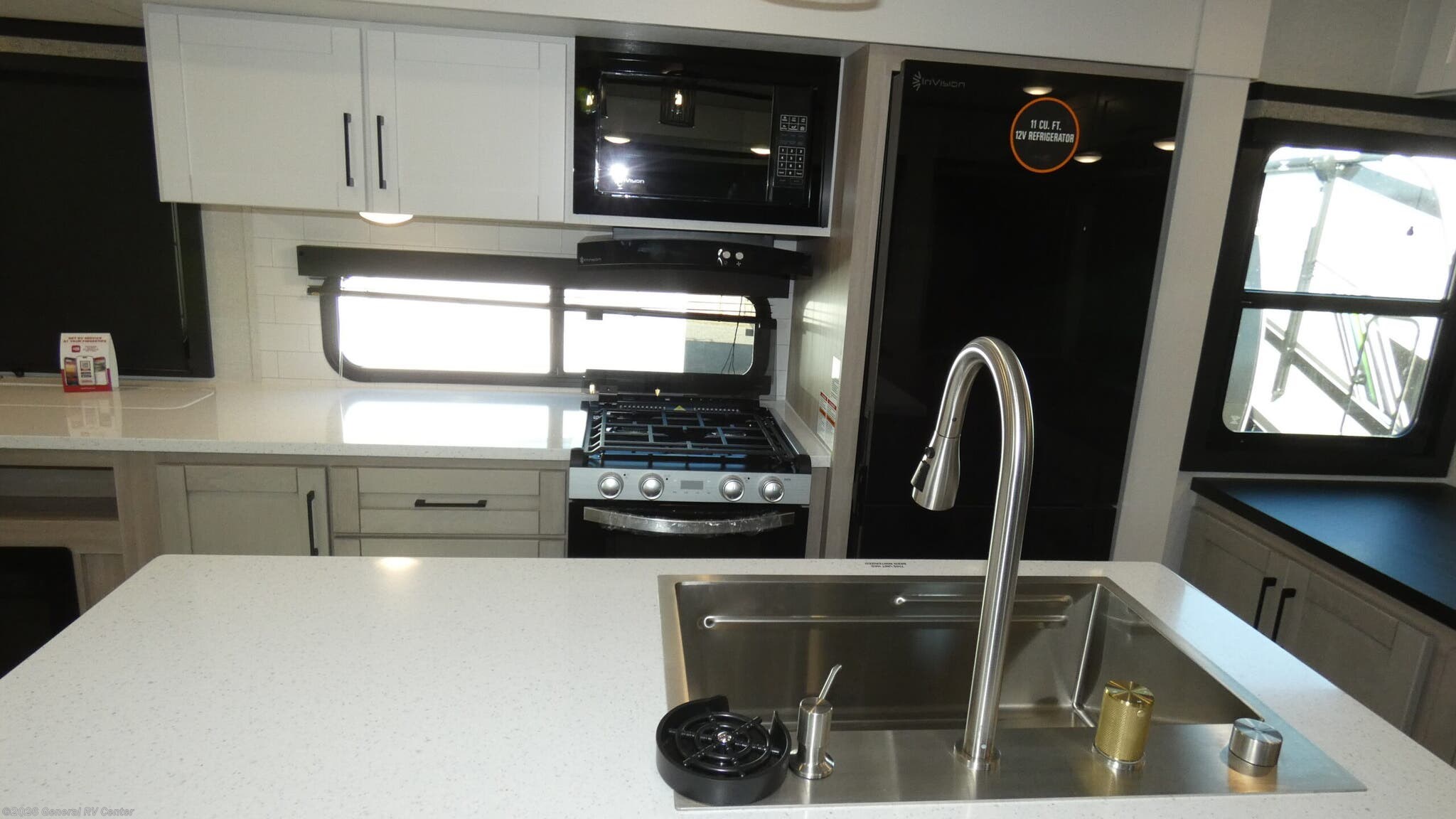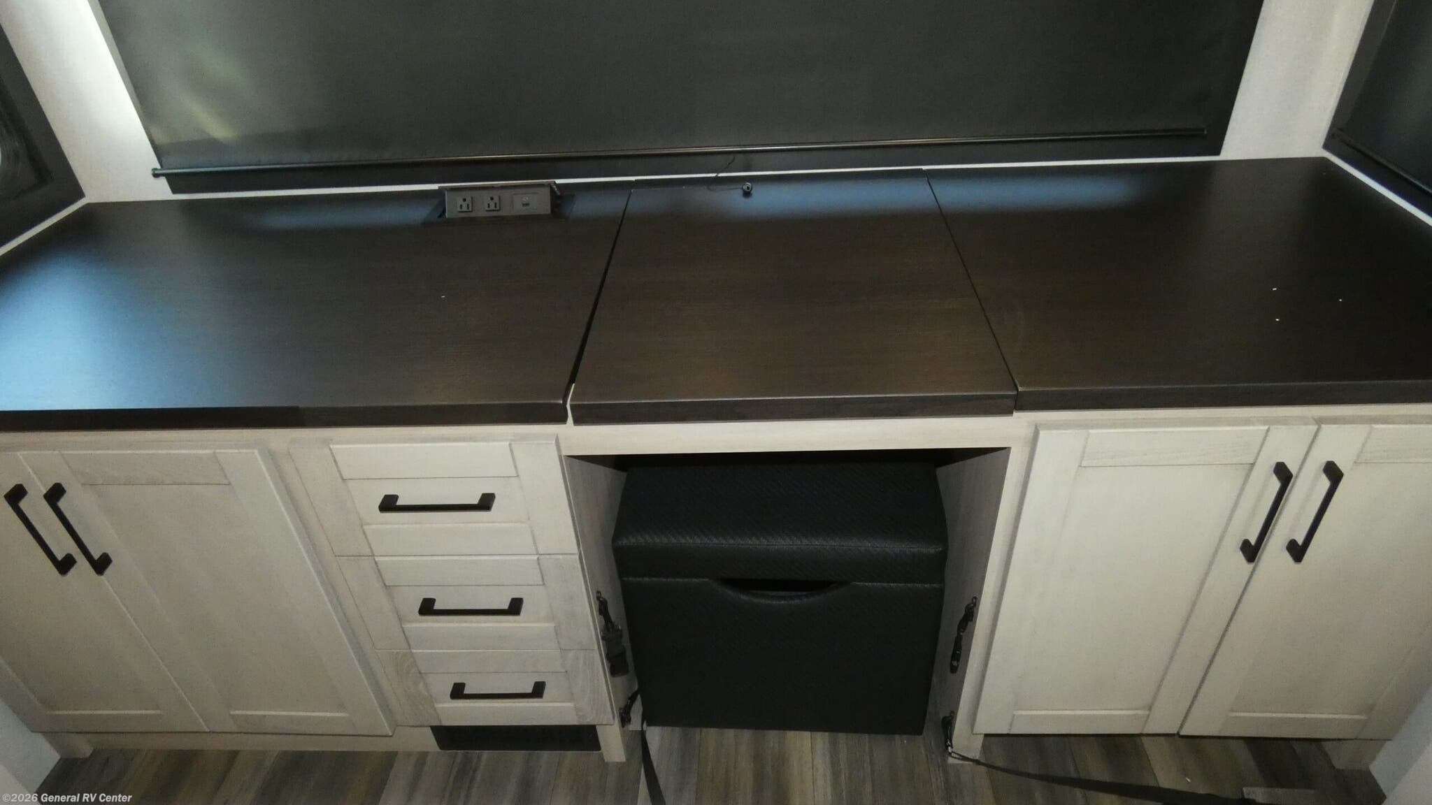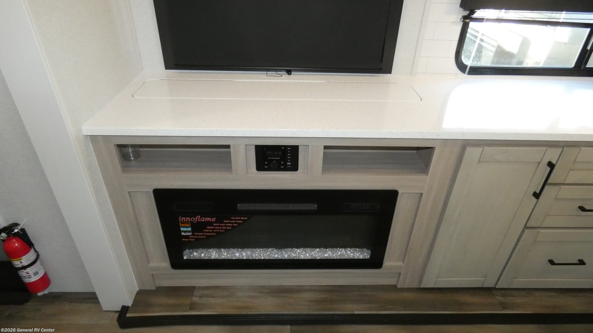 Open Range RV Range Lite travel trailer 280MKI highlights: Rear Desk with Ottoman Two Power Awnings Queen Bed Fireplace This travel trailer is perfect for those who love to get away but may still need a place to telecommute! There is a rear desk that spans the width of the back, along with an ottoman and generous overhead storage. After work, you can make dinner on the three-burner cooktop, then dine at the booth dinette or relax on the tri-fold sofa! There is also a kitchen island here for extra space and additional counter space above the fireplace. A full bath towards the front will let you stay clean throughout your trip, and the front bedroom with a queen bed will feel just like home. With any Range Lite travel trailer by Open Range RV, you will enjoy comfort and convenience at every turn! Each one is built with vacuum bonded sidewalls with interior and exterior Azdel, a 2" TuffShell floor, and front diamond plating to help protect against rock and debris on the way to the campground. The Xtend l Solar Package includes a 200-watt solar panel with a 30-amp solar controller for off-grid capabilities, and you're sure to appreciate the tankless water heater onboard for endless hot showers. Head inside to enjoy residential cabinetry with large doors and drawers, roller shades with radiant barrier backer, Invision kitchen appliance package, and many more comforts!