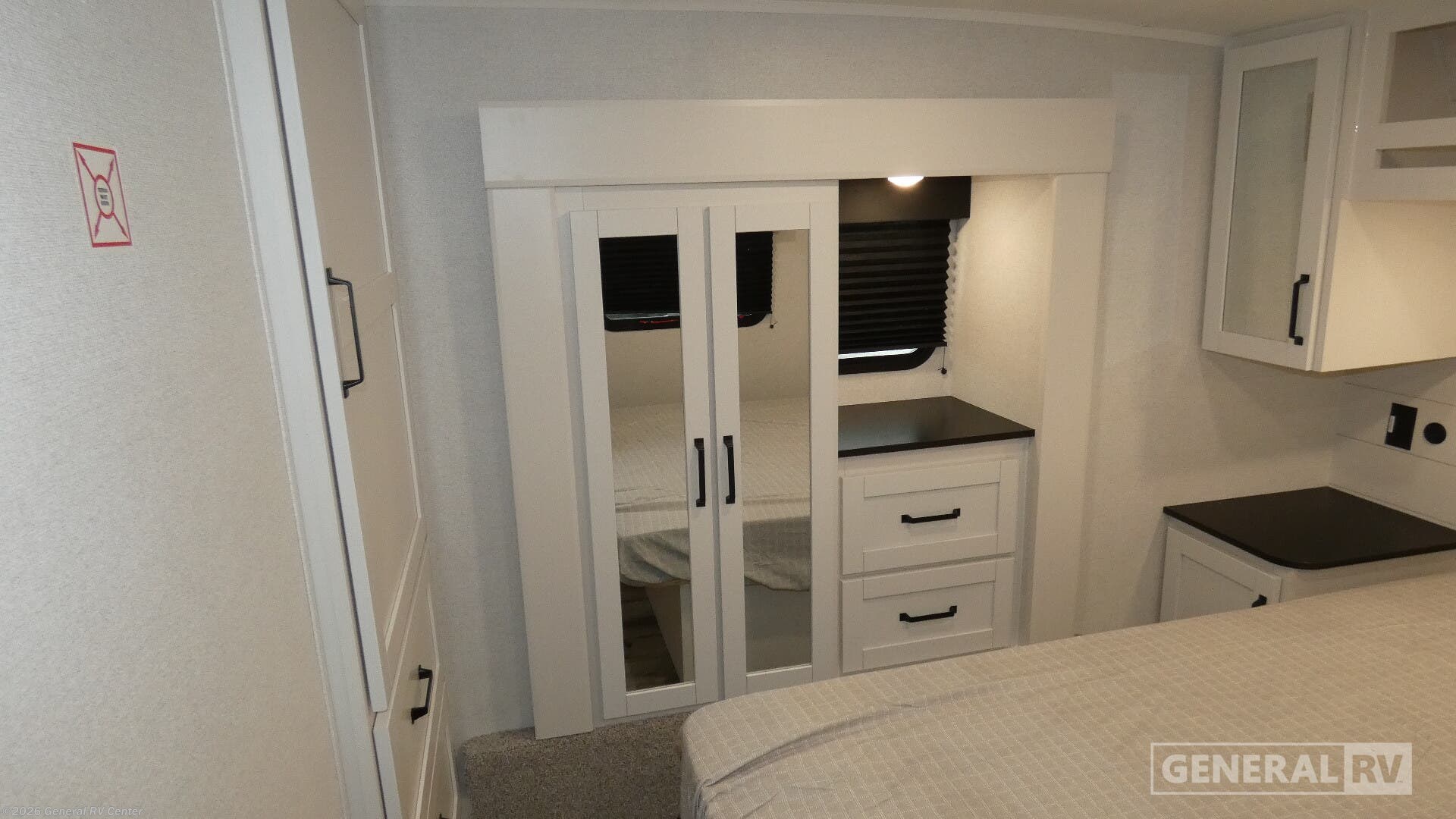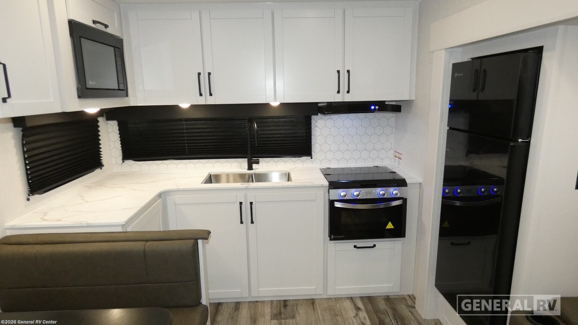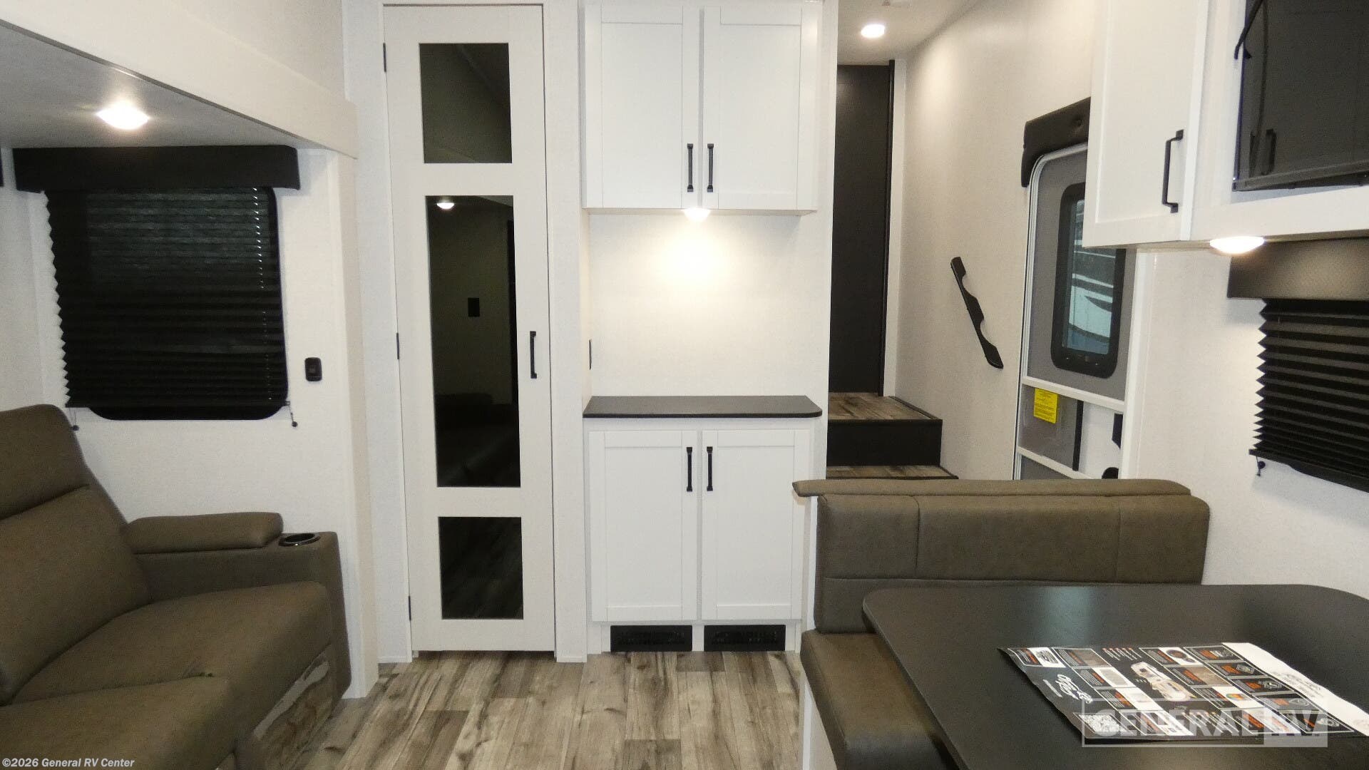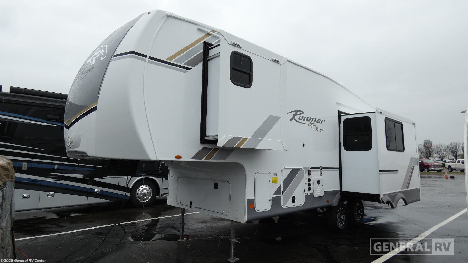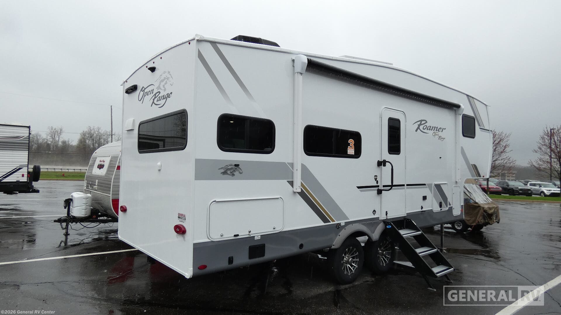 **Open Range RV Roamer Light Duty fifth wheel 24MLDS highlights:** * Queen Bed * Exterior Storage * Booth Dinette * Kitchen Pantry Pack your bags and head to the campground in this rear kitchen fifth wheel! There is ample counter space to prep meals, along with a range and over-the-range microwave. The booth dinette provides a place to dine together, and the tri-fold sofa will be the perfect place to relax in the evenings. There is also a Smart TV across from the sofa to make movie nights complete! The centrally located full bath includes a 30" x 36" shower with a skylight to give you more head room as you get ready each day, and the front private bedroom with a wardrobe slide gives you more space to get dressed in the morning. There is also a queen bed here, dual nightstands, TV prep, and additional storage for shoes and clothes! With any Roamer Light Duty travel trailer or fifth wheel by Open Range RV, you will enjoy a lighter tow weight, while still enjoying at-home comforts and conveniences! The TuffShell vacuum bonded laminated construction is reinforced with heavy-duty fiberglass and welded aluminum frames, helping extend the life of your RV. You will also appreciate the Thermal Seal zero-degree tested weather protection plus the Cool Force system for outstanding protection year around. The mandatory Customer Convenience Package includes many hassle-free features, such as an on-demand water heater, a Keyed-Alike lock system, and an Xtend l Solar Package with a 200-watt solar panel and 30-amp solar controller for off-grid power when you need it. Each Roamer Light Duty also includes residential vinyl flooring throughout, USB and USB-C 12V charging ports with multiple locations throughout, 100% no floor heat vents, and 4" interior ceiling can lighting with 4000k lumen to keep your space well illuminated!