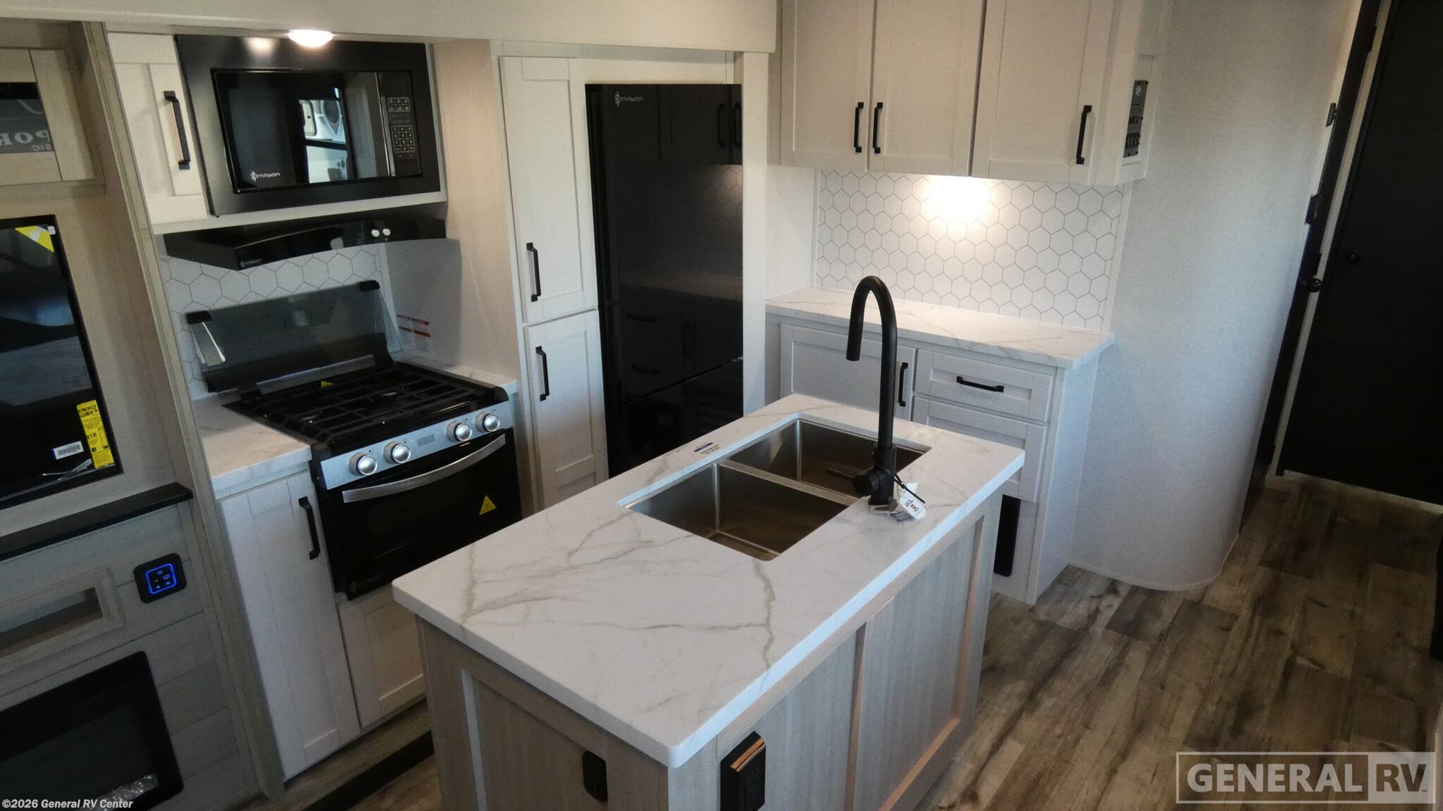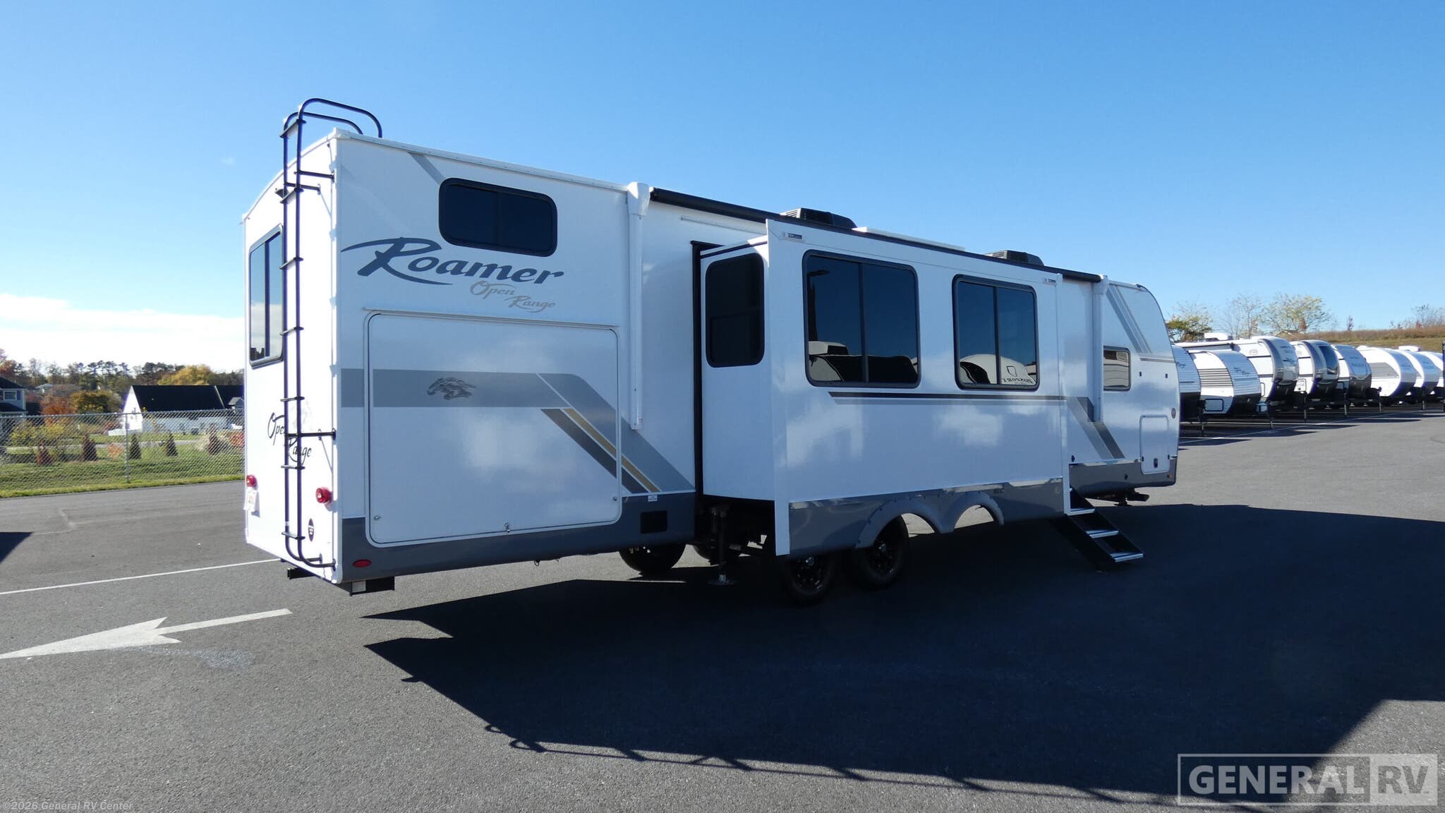 Open Range RV Roamer Light Duty travel trailer 31TBTS highlights: Kitchen Island Front Private Bedroom Dual Opposing Slides Outside Kitchen If you enjoy camping with a large group, this travel trailer is for you! There is a rear private bunkhouse with a bunk above a wardrobe and TV prep, with a tri-fold sofa and flip-up top bunk across the room. The combined kitchen and living area includes dual opposing slides for more space, a booth dinette, and a tri-fold sofa for even more seating and sleeping options. The chef of your group will love the kitchen island with a multi-functional sink, plus a 12V refrigerator, pantry and hutch for extra storage. The full bath is spacious, allowing you plenty of space to freshen up each day, and the front private bedroom with an Olympic queen bed is sure to bring a great night's rest. And the bedroom includes a wardrobe with washer and dryer prep if you want to add these appliances! With any Roamer Light Duty travel trailer or fifth wheel by Open Range RV, you will enjoy a lighter tow weight, while still enjoying at-home comforts and conveniences! The TuffShell vacuum bonded laminated construction is reinforced with heavy-duty fiberglass and welded aluminum frames, helping extend the life of your RV. You will also appreciate the Thermal Seal zero-degree tested weather protection plus the Cool Force system for outstanding protection year around. The mandatory Customer Convenience Package includes many hassle-free features, such as an on-demand water heater, a Keyed-Alike lock system, and an Xtend l Solar Package with a 200-watt solar panel and 30-amp solar controller for off-grid power when you need it. Each Roamer Light Duty also includes residential vinyl flooring throughout, USB and USB-C 12V charging ports with multiple locations throughout, 100% no floor heat vents, and 4" interior ceiling can lighting with 4000k lumen to keep your space well illuminated!