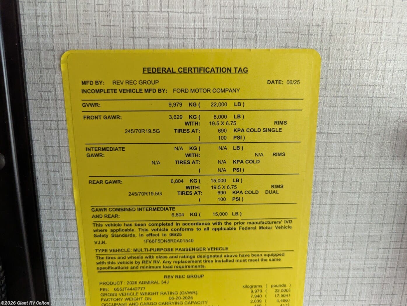Visit Giant RV in California today to explore the 2026 Admiral 34J and elevate your family travel experience!