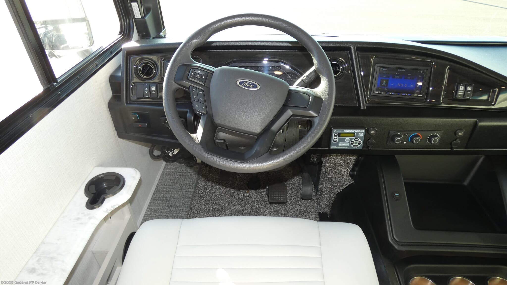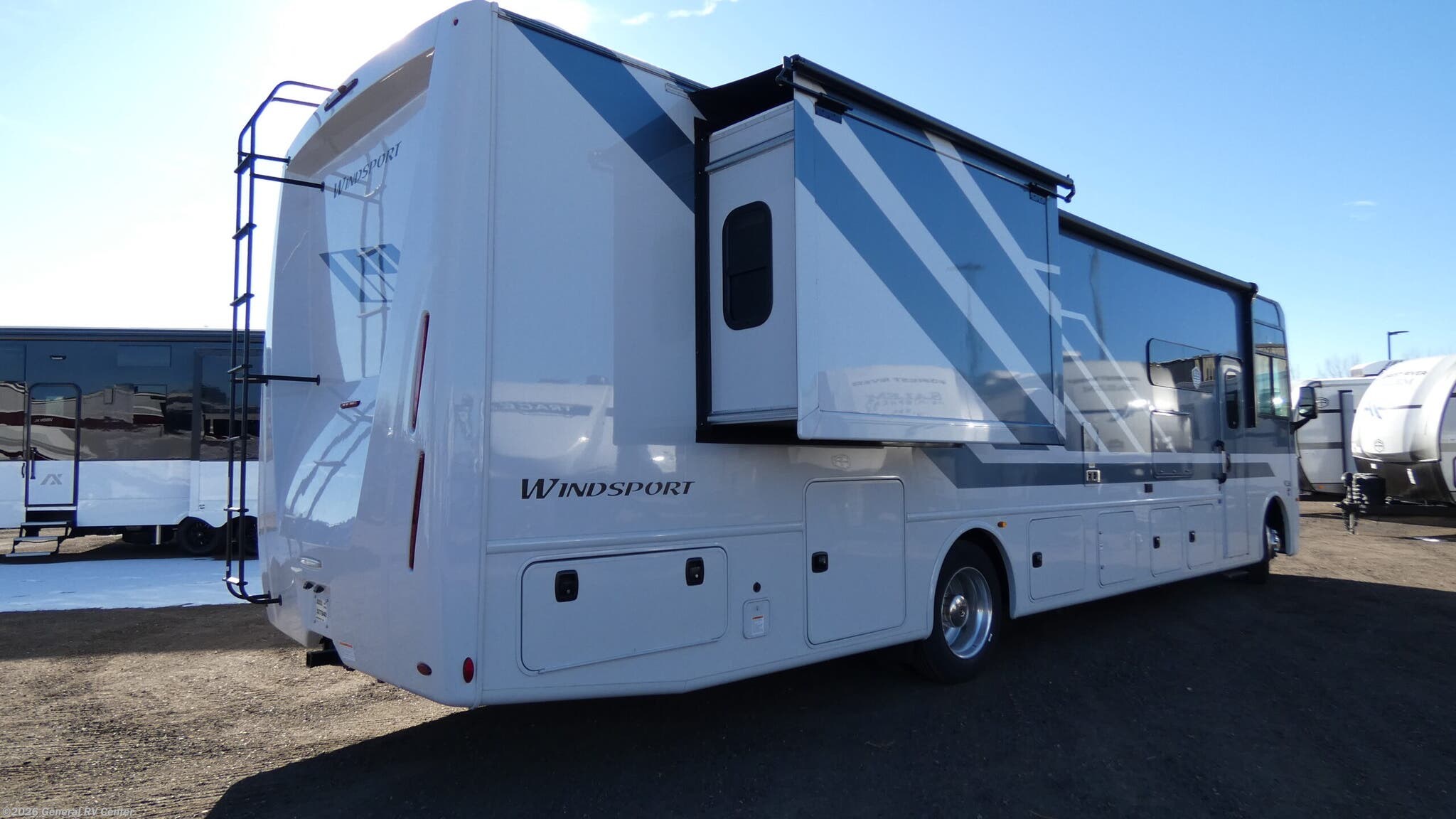 Step into the 2026 Holiday Rambler Admiral 34J, where luxury meets practicality. This model is designed for families and adventurers who crave comfort on the road. With a spacious interior, the Eclipse 34J offers sleeping accommodations for up to 10, featuring a serene king bed in the rear bedroom, a cozy queen bed, and versatile convertible options. The bunkhouse with its own doors provides a haven for kids or guests, ensuring everyone has their own space to unwind. The heart of this RV is its well-appointed center kitchen, equipped with a full-size electric refrigerator and a three-burner cooktop, perfect for preparing meals on the go. The front living area invites relaxation with a jackknife sofa and a dream dinette, both ideal for gathering or lounging. Enjoy the convenience of a powered 22 ft. retractable awning, creating an inviting outdoor space for entertainment. The Eclipse 34J is built on a robust Ford F53 chassis, offering a powerful 335-horsepower engine and an impressive 8,000 lbs towing capacity, making it a reliable companion for your journeys. Visit your nearest General RV dealership to explore this exceptional model and make it your own.