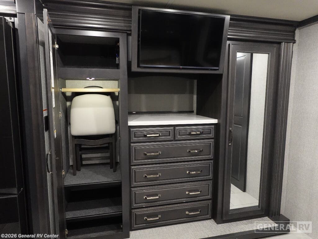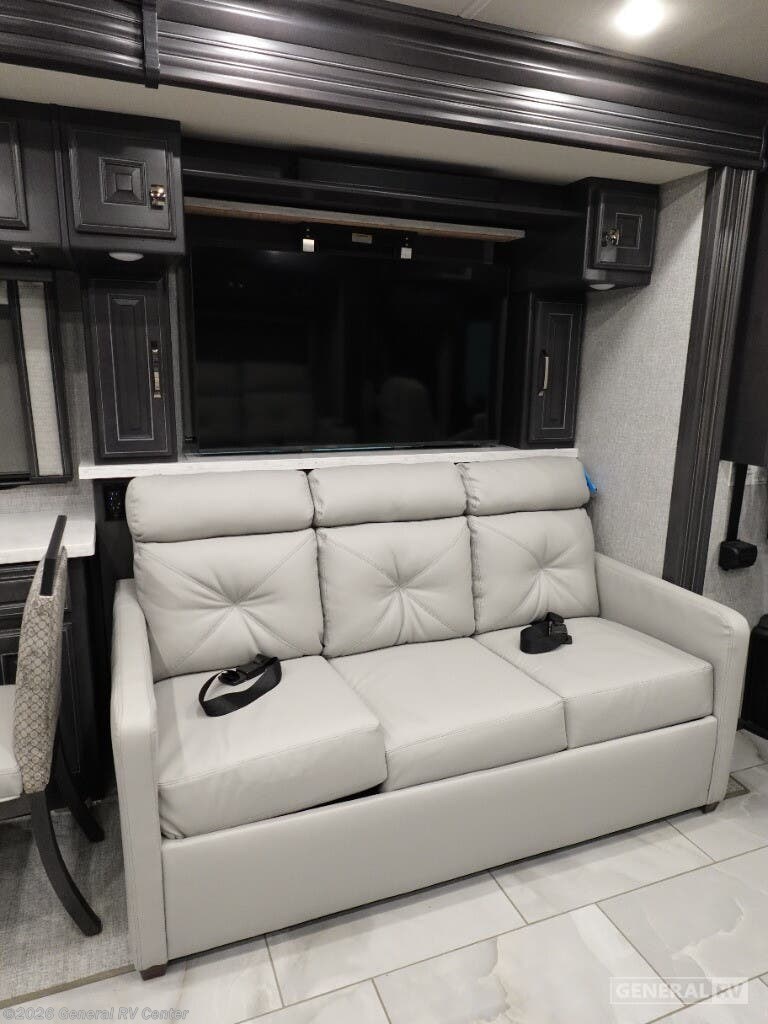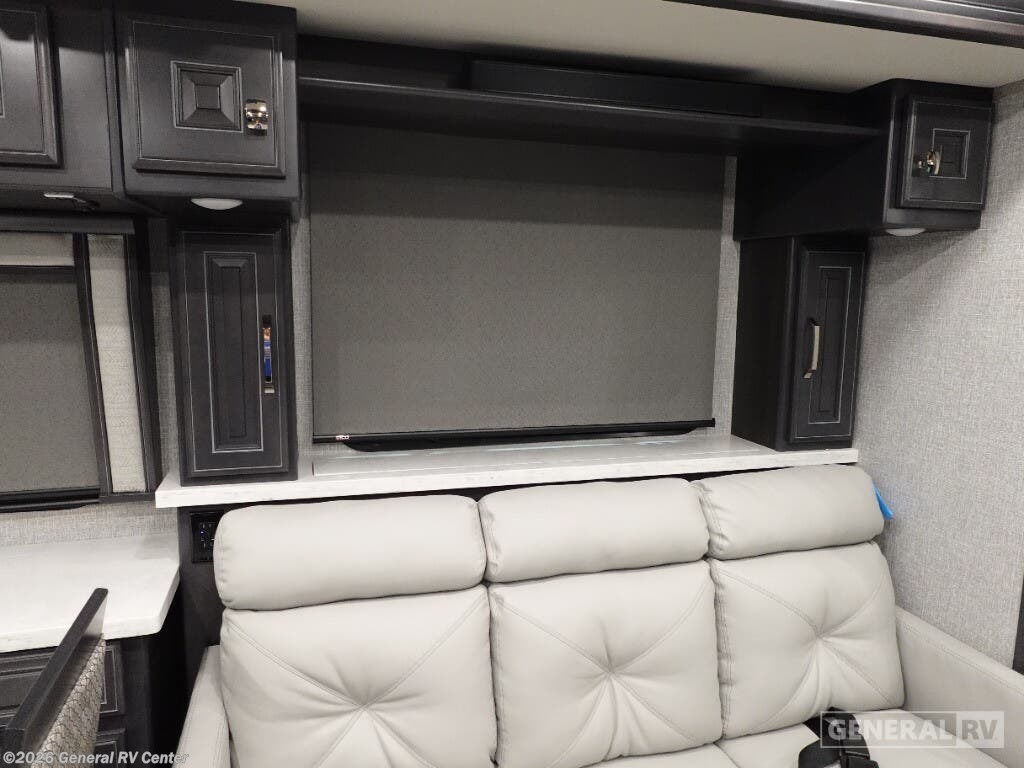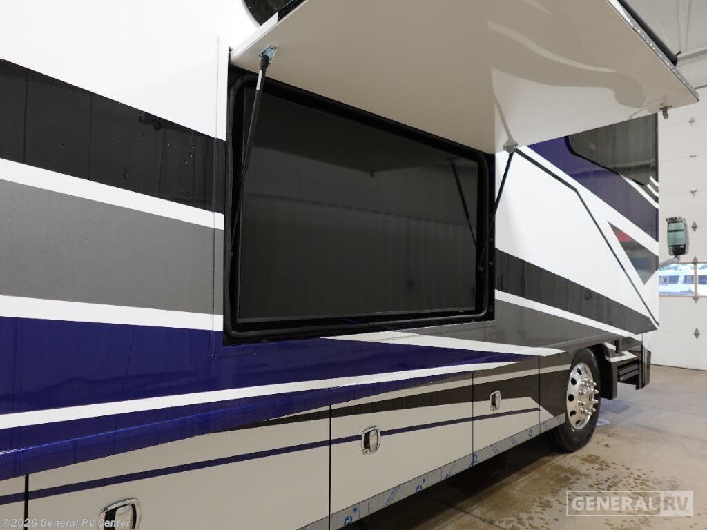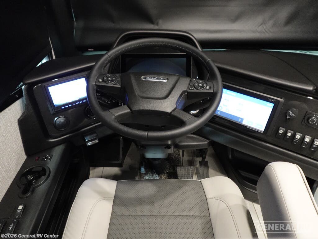 Step into the future of luxury travel with the 2026 Holiday Rambler Armada 40M. This exquisite motorhome is designed for those who crave both adventure and comfort. Imagine a spacious front living area where you can unwind on plush sofas while watching the pop-up LED TV. The freestanding dinette offers a perfect spot for meals or game nights, while the induction cooktop and convection microwave in the center kitchen make meal prep a breeze. With a full-size electric refrigerator and a convenient dishwasher, you have all the amenities of home right at your fingertips. Retreat to the serene center bedroom, featuring a king-sized Encore Series bed that promises restful nights. The clever floorplan includes convertible sleeping options and a bunk, accommodating up to nine guests. Enjoy the luxury of dual lavatories and a stylish tile shower, ensuring everyone has space to refresh. The stackable washer and dryer mean you can pack light and stay fresh on the road. With a powerful Cummins I6 Diesel Pusher engine and Freightliner XC-Series chassis, this RV is built for both power and reliability. Visit your nearest General RV dealership to experience the Armada 40M and start your next adventure.
