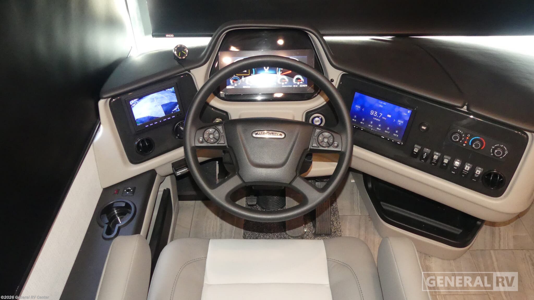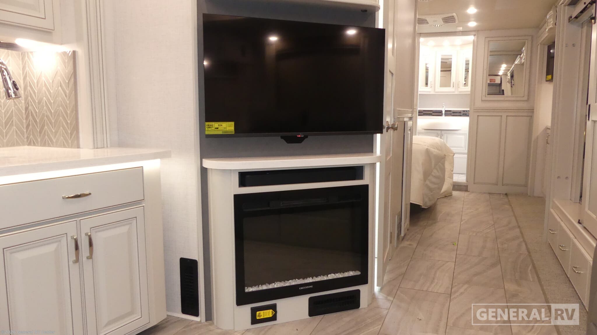 Holiday Rambler Endeavor Class A diesel motorhome 38N highlights: Two Full Baths Convertible Bunk Beds Side-By-Side Washer/Dryer Exterior LED TV Looking to travel with friends and family in luxury? This coach provides space-saving convertible bunk beds with barn doors right across from the mid-coach full bathroom. The theater sofa and the dinette allow you to relax and visit, plus the driver and passenger seats swivel for more seating in the main living and kitchen area. Everyone can watch the LED TV with a fireplace below and/or the LED TV over the cab, and there is another LED TV in the bedroom, plus an entertainment center with LED TV outside. The rear bathroom that is attached to the master bedroom has a wardrobe for your things, and the master bedroom allows you to sleep like a king on the slide out giving you more floor space. There is also a side-by-side washer/dryer that will keep everything clean while you're away. The kitchen offers stainless steel appliances, a convection microwave, a two burner induction cooktop and so much more. Start planning your trip today! Experience refined comfort and dependable performance in this luxury Class A diesel motorhome, built on a durable Titan Bridge® foundation and a Freightliner Custom Chassis XCM for a smooth, confident ride. Powered by a Cummins® 6.7L 360HP engine, this coach is designed for both strength and stability with V-Ride™ technology and an advanced suspension system. Inside, you’ll find upscale residential features like a refrigerator, induction cooktop, convection microwave, and beautifully polished porcelain tile flooring with heat in the living area. Modern conveniences such as dual cockpit monitors, Firefly multiplex wiring with touchscreen controls, and a WiFi extender with LTE and solar support keep you connected on the road, while the Aqua-Hot 400D system delivers continuous hot water and cozy interior heat. With generous storage throughout and stylish furnishings, this motorhome is ready to elevate every journey.