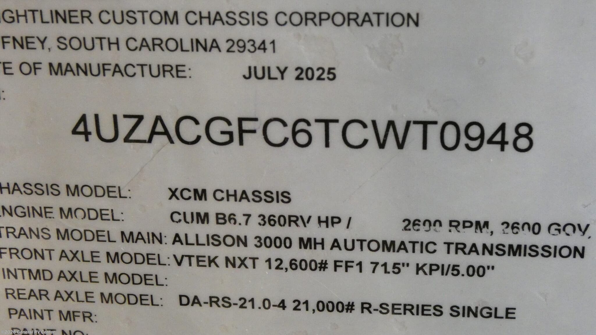 - VIN4UZACGFC6TCWT0948