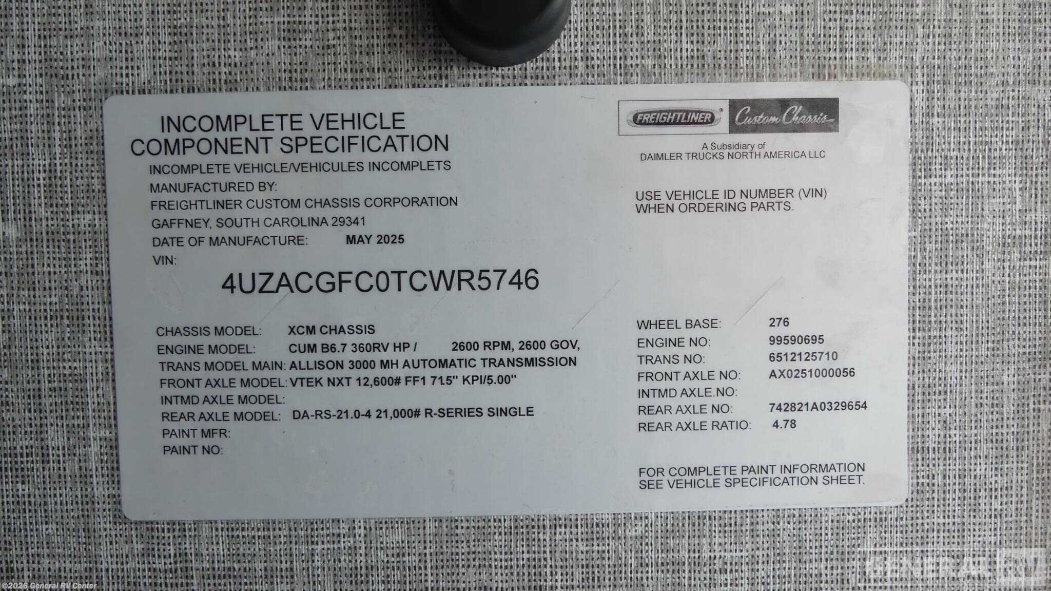 - VIN4UZACGFC0TCWR5746