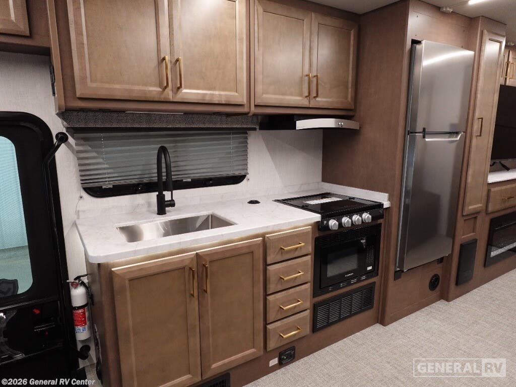 Experience the open road like never before with the 2026 Holiday Rambler Incline 27U. This RV is a perfect blend of comfort and innovation, designed for those who crave adventure without sacrificing the comforts of home. At nearly 30 feet in length, the Incline 27U offers a spacious interior featuring a front kitchen, center living area, and a rear bath. The clever layout includes a versatile queen Murphy bed, which transforms the living area by day, and a cozy U-shaped dinette that invites you to gather for meals or game nights. With a sleeping capacity of up to five, including an overhead bunk, it's ideal for families or small groups. The exterior is just as impressive with a 20-foot powered retractable awning, providing ample shade for outdoor relaxation. The RV is built on a robust Ford E450 chassis, powered by a 325-horsepower engine, ensuring a smooth and reliable drive. Inside, you'll find a full-size electric refrigerator, a three-burner cooktop, and a convection oven, making meal prep a breeze. The unit is equipped with an automatic heater to keep you warm on chilly nights. With generous fresh, gray, and black water capacities, your adventures can be extended without frequent stops. For more details and to explore this RV further, visit your nearest General RV dealership.