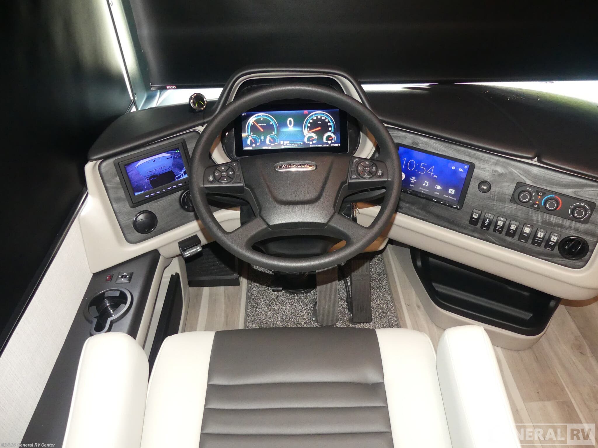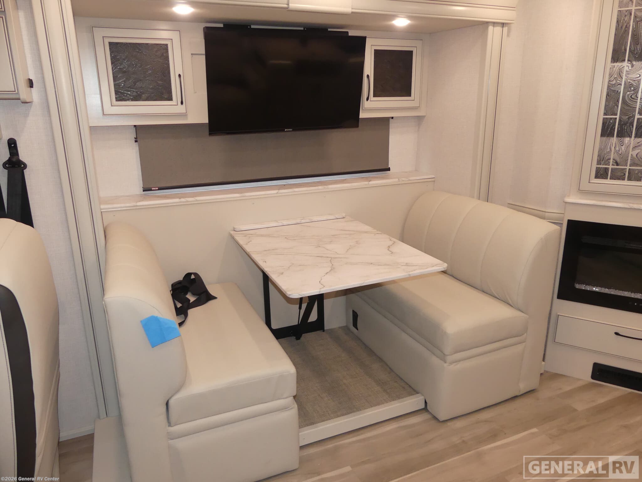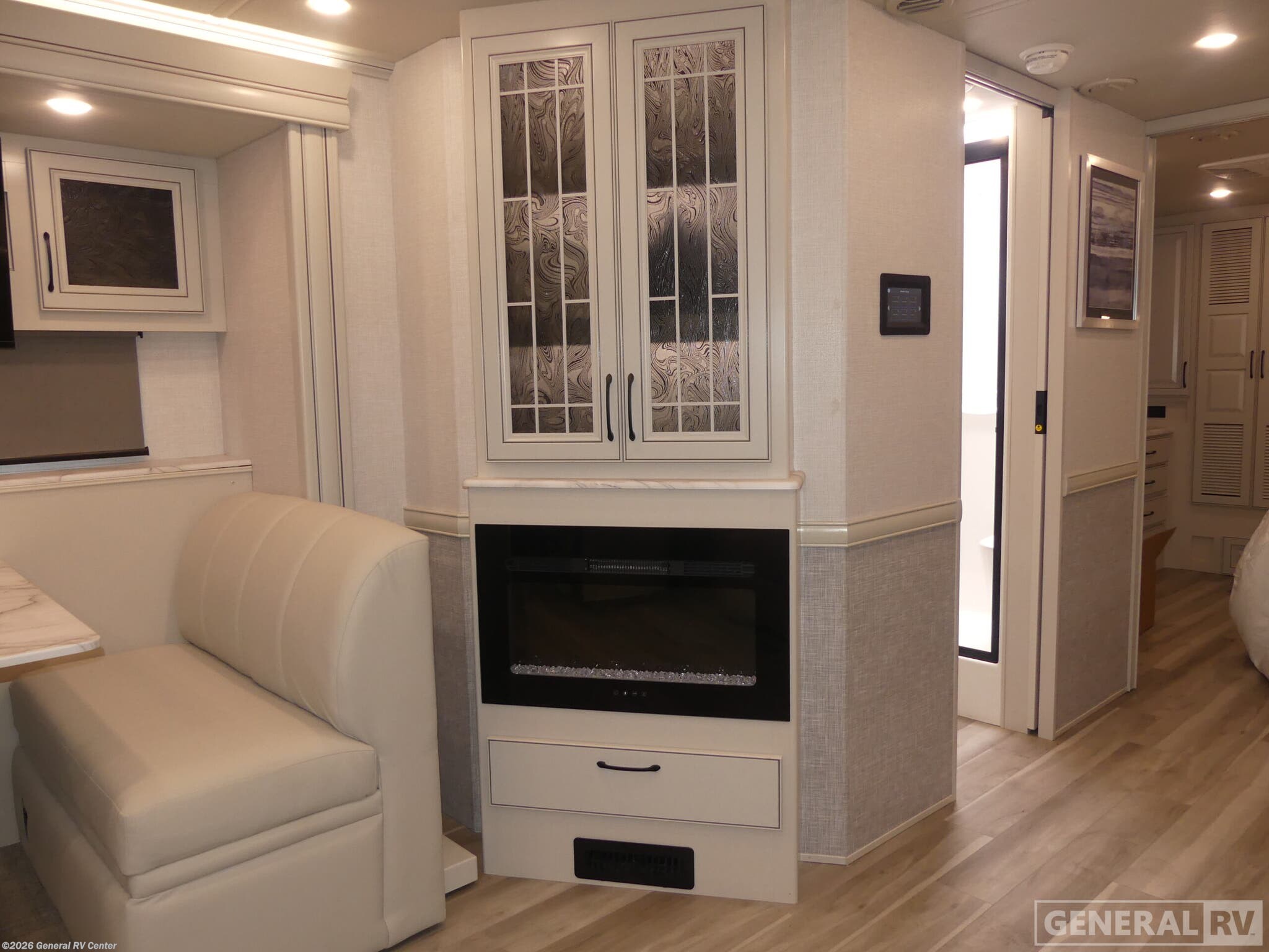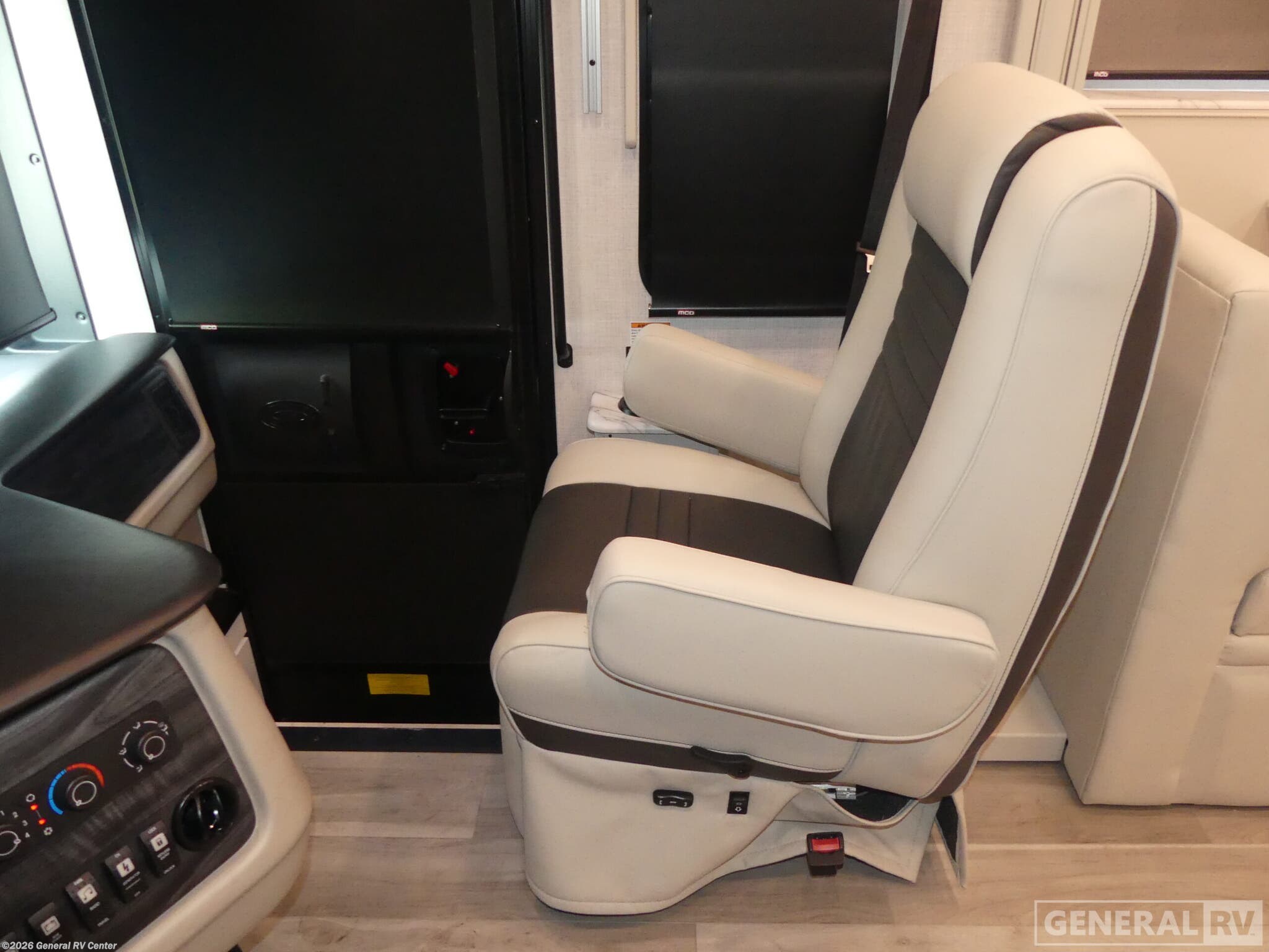 Experience luxurious travel in the 2026 Holiday Rambler Nautica 33TL, a class A diesel motorhome built on the powerful Freightliner XC-Series chassis with a 340-horsepower Cummins 6.7L diesel engine. At just over 35 feet long, this coach delivers an impressive blend of elegance and functionality with its three slides that dramatically expand your living space. The front living area features a comfortable sleeper sofa and dream dinette, both perfect for relaxing or entertaining guests, while the center kitchen boasts a full-size residential refrigerator, convection microwave, and induction cooktop for creating gourmet meals on the road. The rear bedroom is a true sanctuary with its Encore Series king bed and adjacent fireplace, creating the perfect retreat after a day of adventure. The well-appointed bathroom features a fiberglass shower with glass door, skylight, and residential fixtures. Two strategically placed fireplaces add both warmth and ambiance to this stunning motorhome. Outside, enjoy the convenience of the exterior entertainment center with LED TV and Bluetooth soundbar. With residential-style amenities, ample storage thanks to the Delta Foundation, and the exceptional drive quality of the V-Ride rear suspension system, the Nautica 33TL delivers an unmatched travel experience. For more information on this premium diesel pusher, visit your nearest General RV dealership.