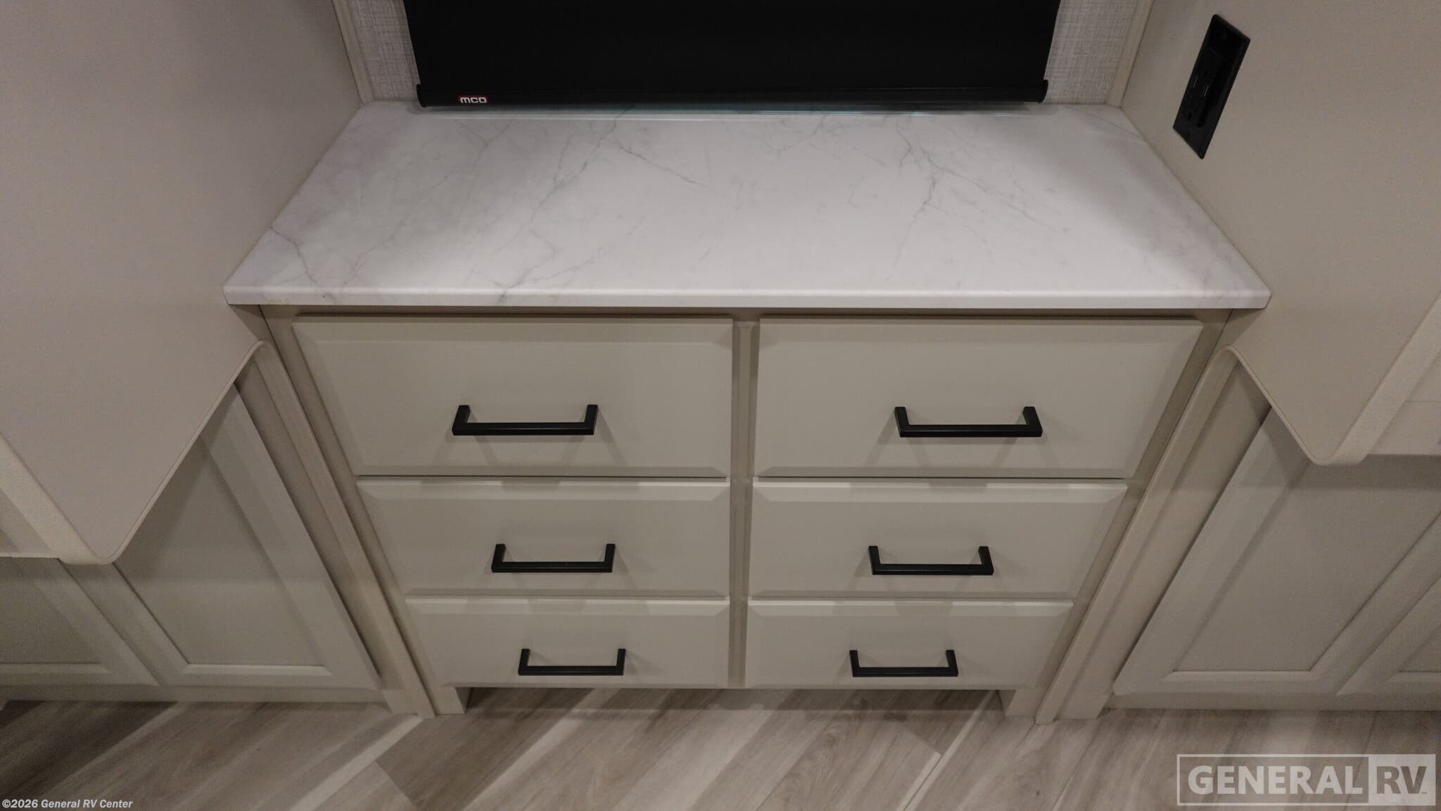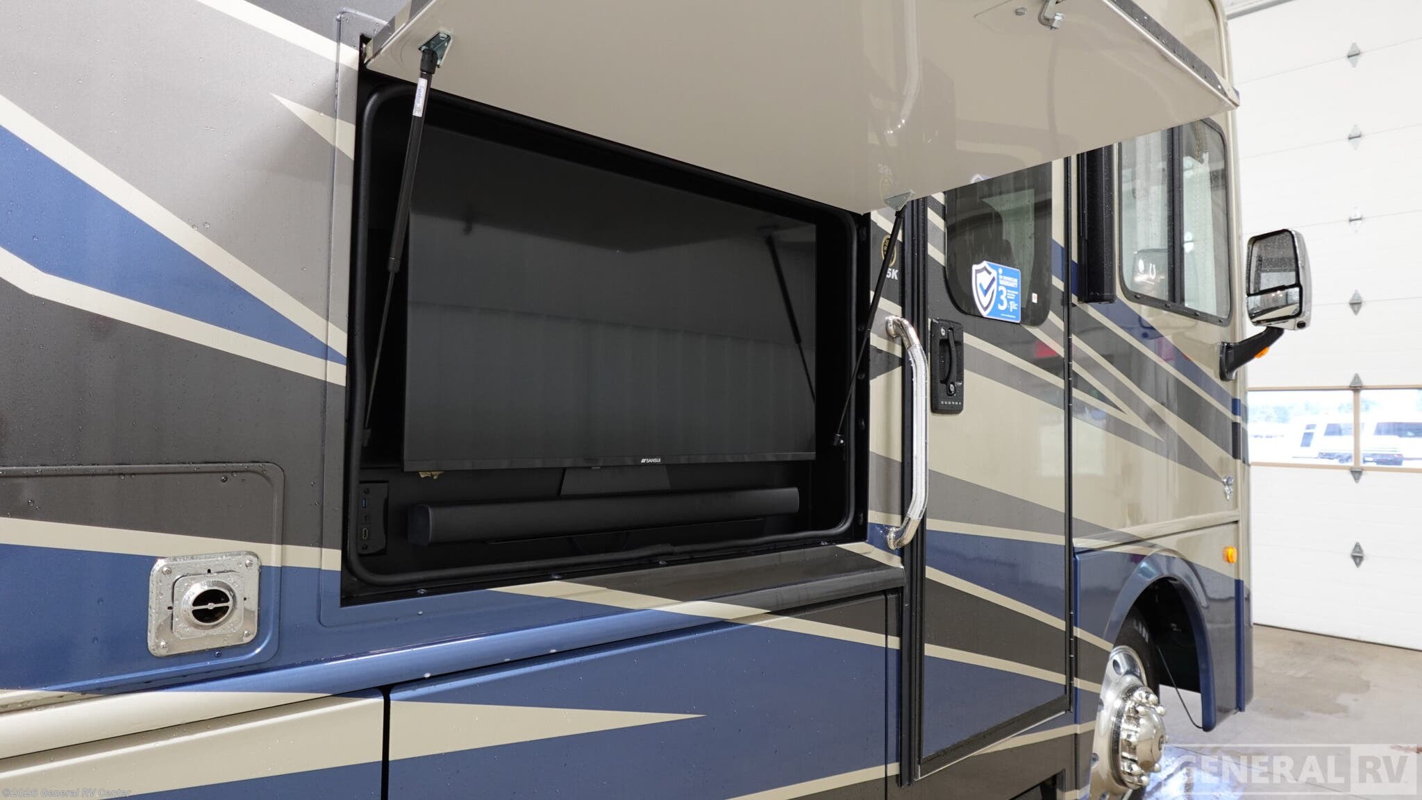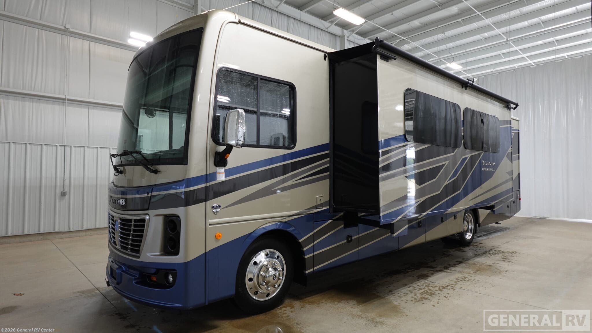 Step into luxury with the 2026 Holiday Rambler Vacationer 35K, where sophisticated design meets practical functionality. This Class A gas motorhome stretches 36' 3" long with two strategically positioned slide-outs that create an expansive living space perfect for both short getaways and extended journeys. Powered by a formidable Ford F53 chassis and 7.3L V8 engine delivering 350 horsepower, this coach offers both power and reliability on the road. The thoughtful bath-and-a-half floorplan provides convenience for families and guests, while the master bedroom offers a sumptuous king-sized bed for ultimate comfort. The main living area features a dinette and premium entertainment options both inside and outside the vehicle. Culinary enthusiasts will appreciate the residential refrigerator and three-burner cooktop, making meal preparation a breeze while traveling. Modern amenities including dual A/C units, automated leveling system, and a 100W solar panel ensure comfort regardless of your destination. The premium Vetrosina fiberglass exterior and Powerlock construction system provide durability and peace of mind for years of adventure. To experience the ultimate in mobile luxury, visit your nearest General RV dealership and discover why the Vacationer 35K continues to set the standard for Class A motorhomes.