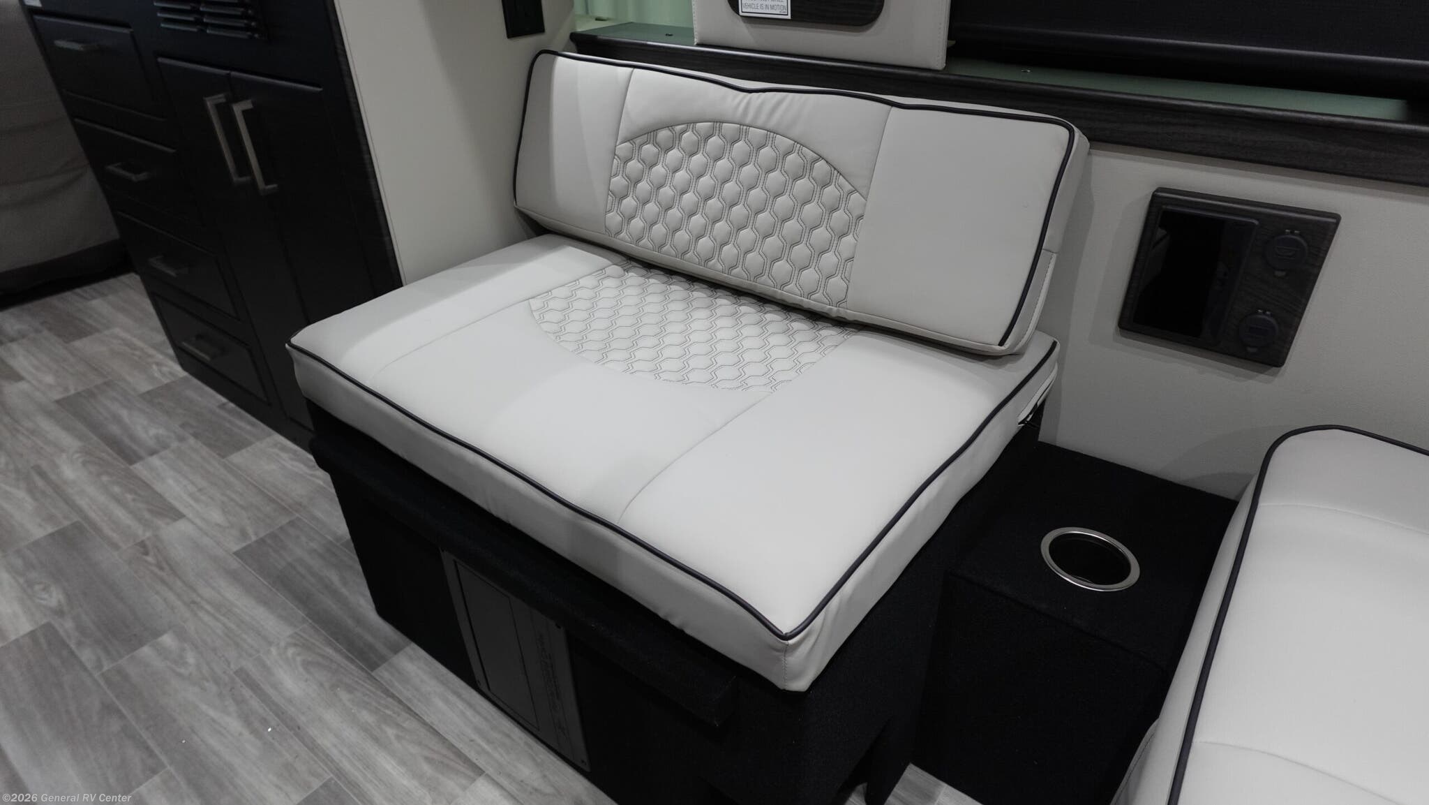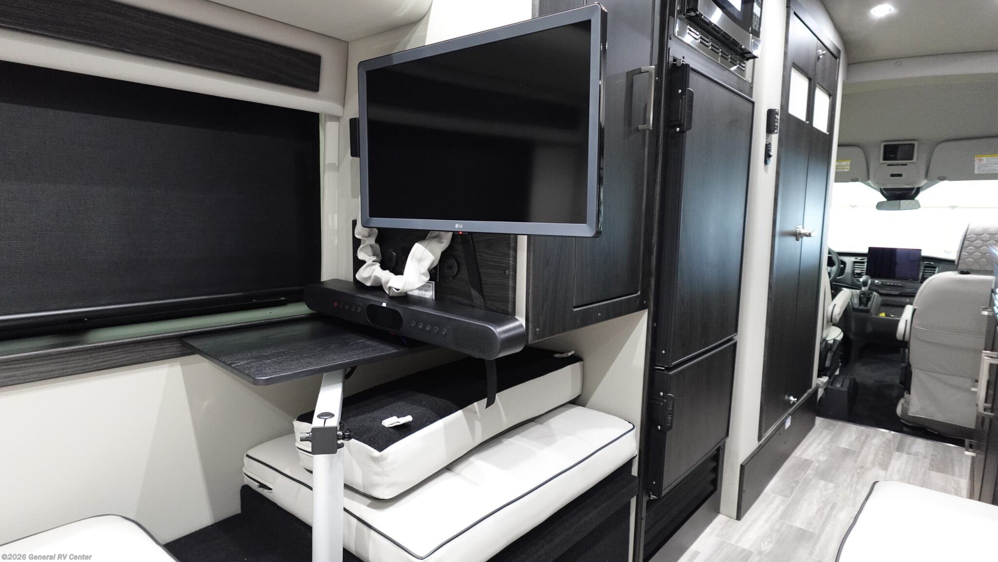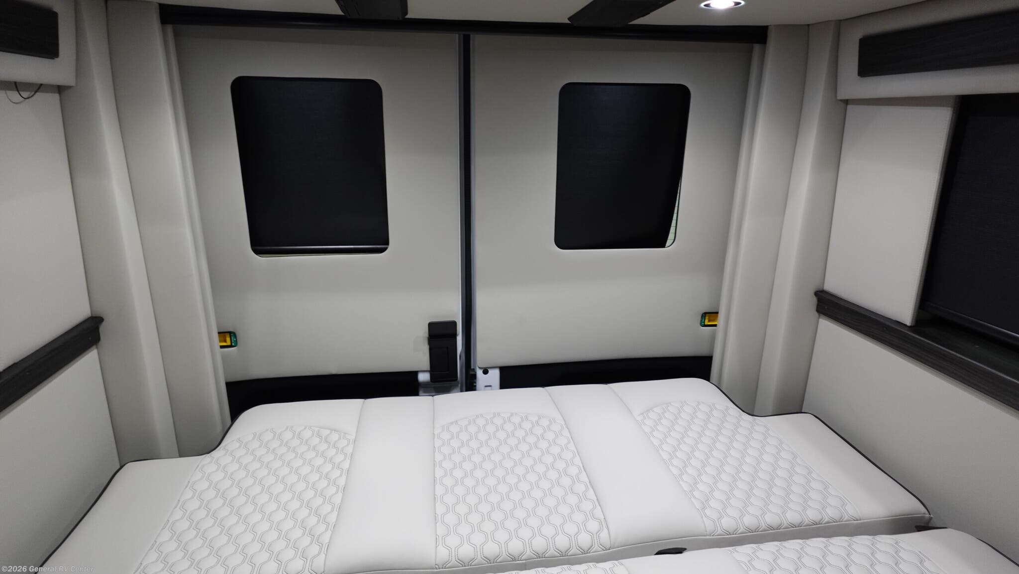 This unit might be small but it packs it all in! Starting off in the front of the unit you'll see the driver and passenger seats with all the gadgets. Plenty of storage throughout the unit. First step into the kitchen area where you will find plenty of cabinets, two cook top burners, sink, fridge and more. Next you'll see the unit comes with a very large bathroom equipped with a shower, sink, lav and vanity. Dont skip out on movie night in this unit with the entertainment center for watching movies or for game night! When its time to relax for the evening, you can convert the two sofas into a spacious sleeping space for
