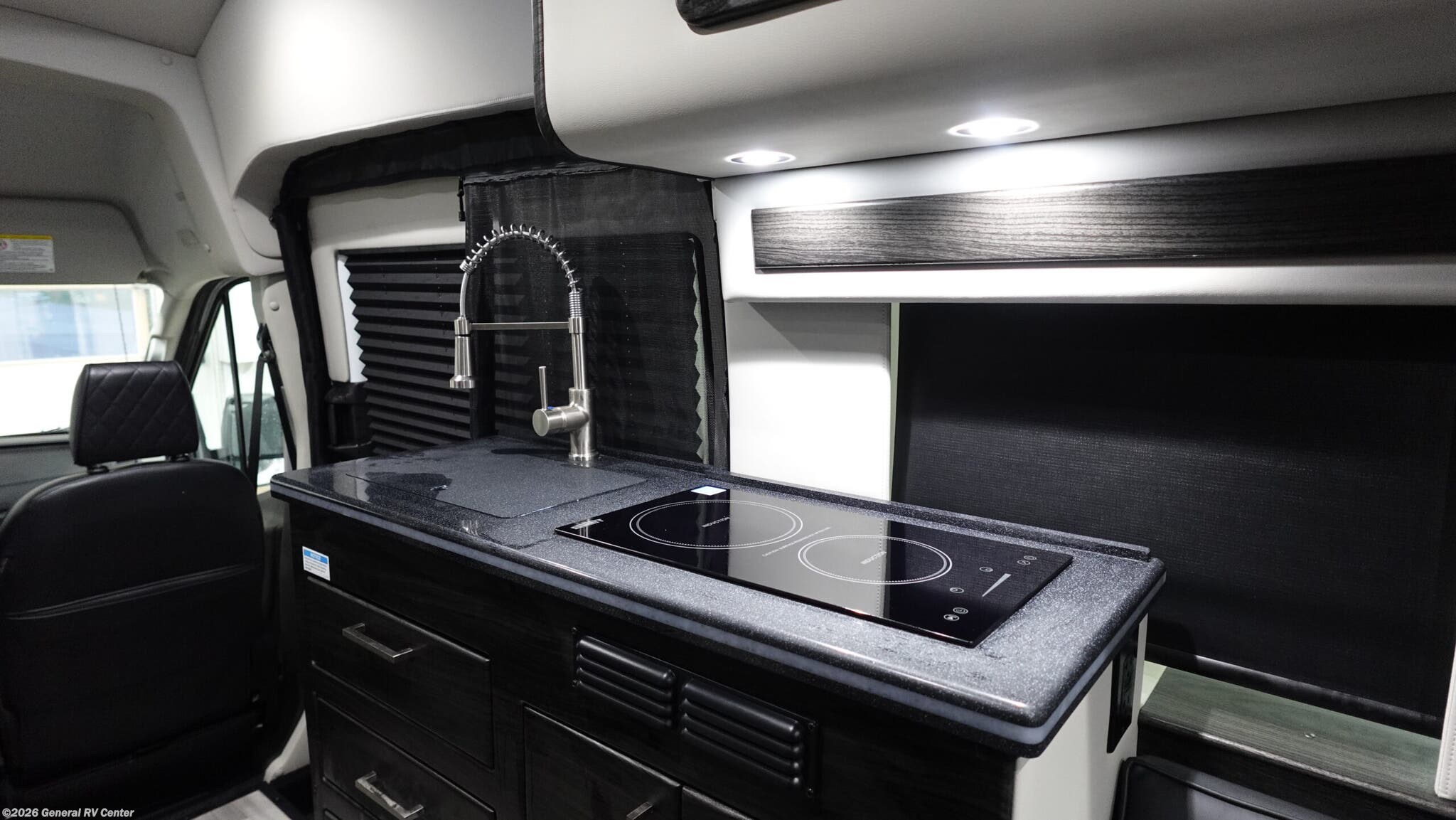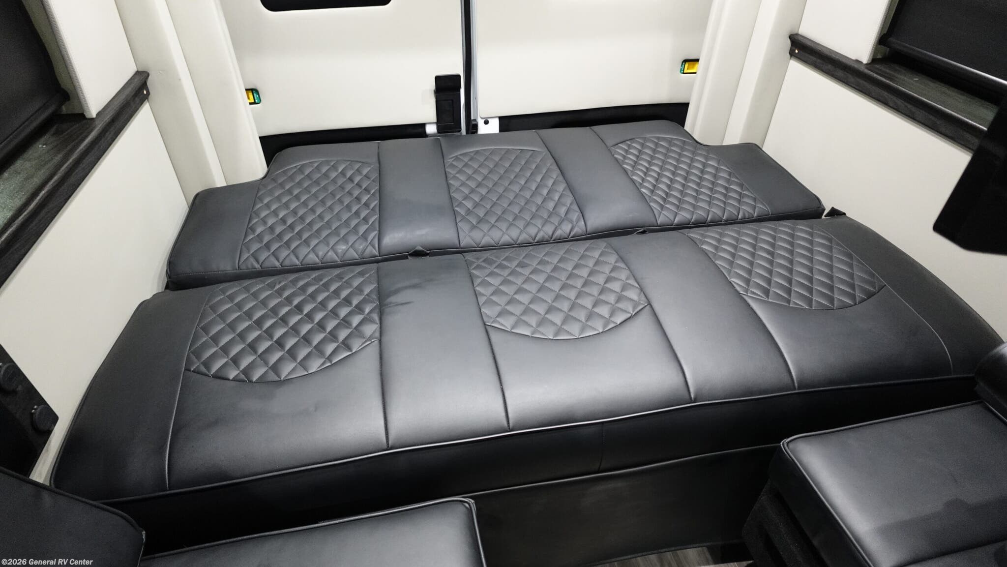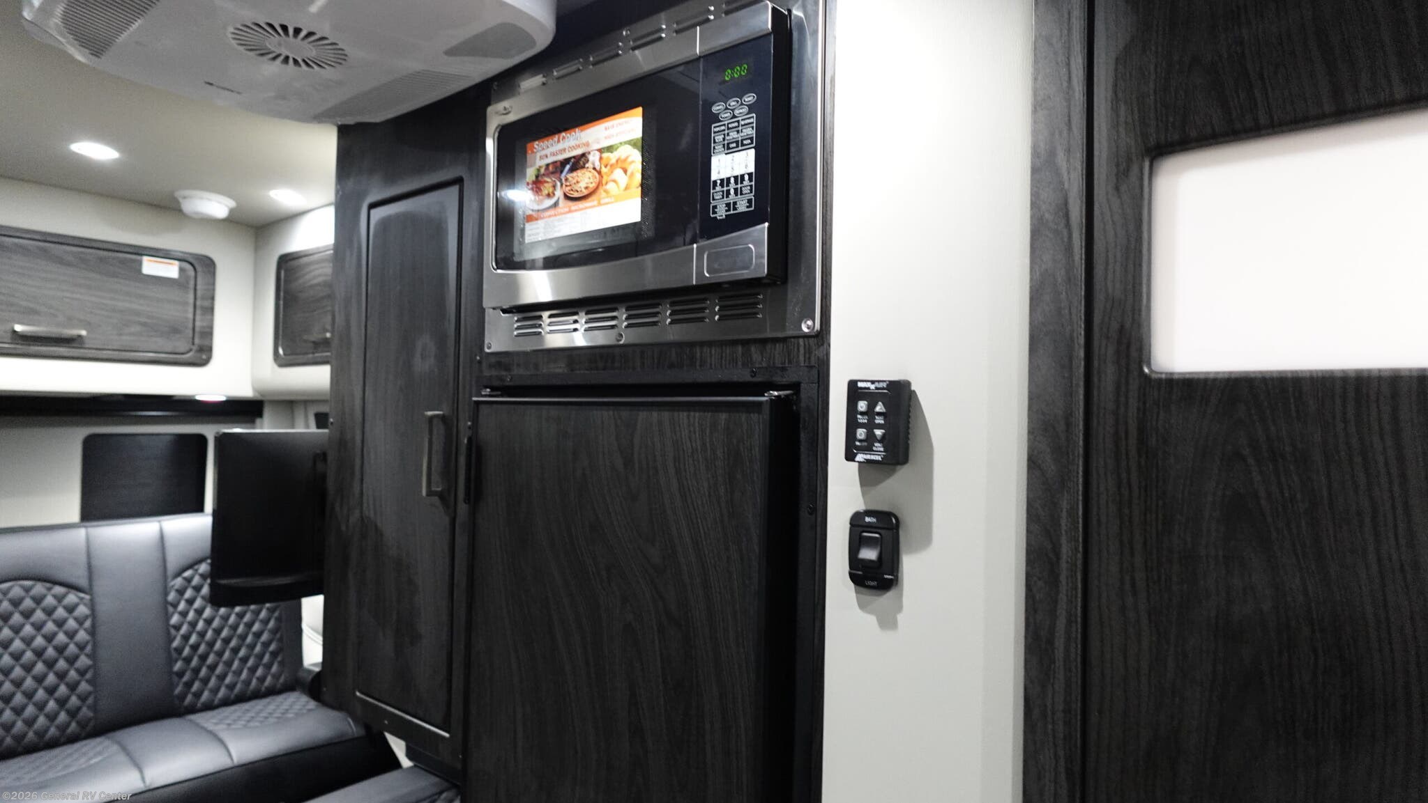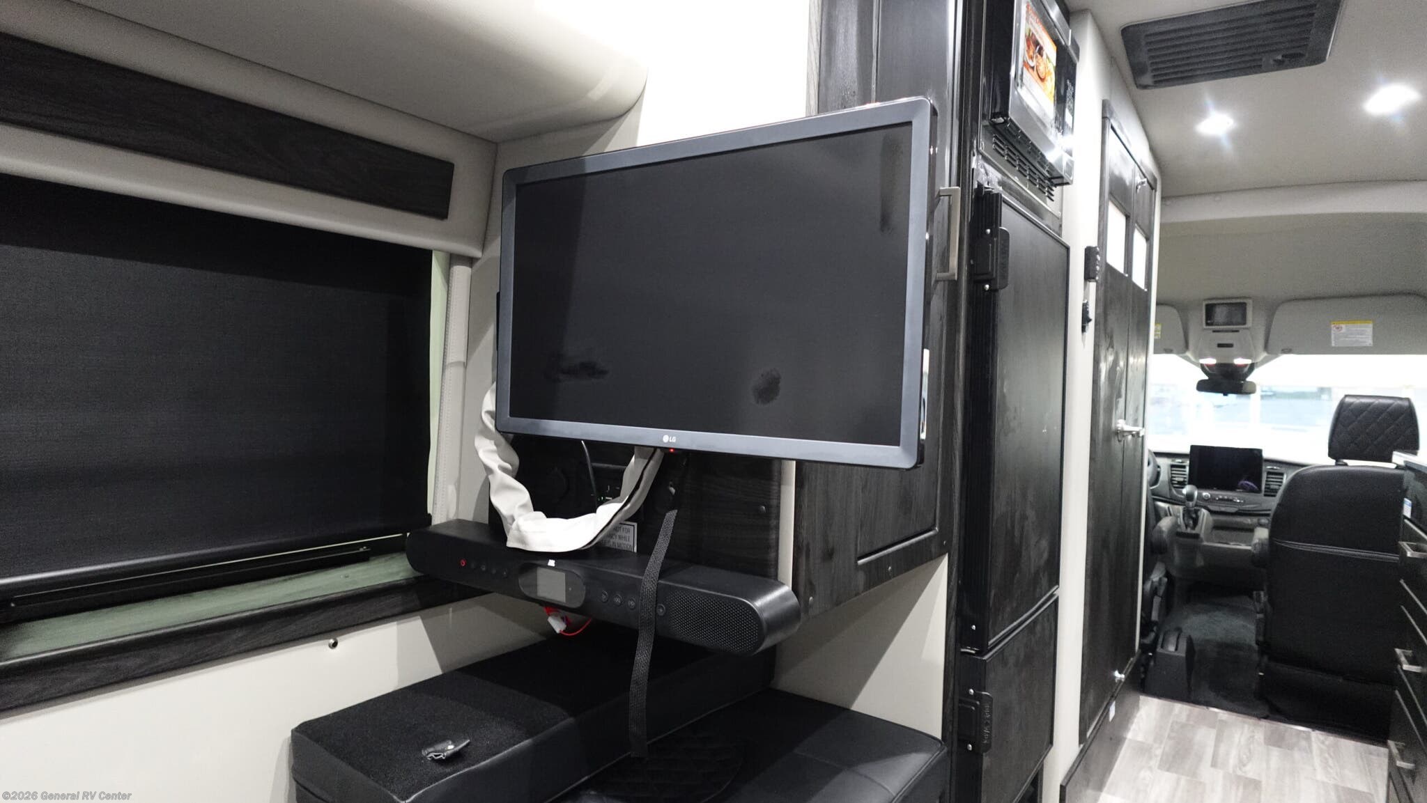 This unit might be small but it packs it all in! Starting off in the front of the unit you'll see the driver and passenger seats with all the gadgets. Plenty of storage throughout the unit. First step into the kitchen area where you will find plenty of cabinets, two cook top burners, sink, fridge and more. Next you'll see the unit comes with a very large bathroom equipped with a shower, sink, lav and vanity. Dont skip out on movie night in this unit with the entertainment center for watching movies or for game night! When its time to relax for the evening, you can convert the two sofas into a spacious sleeping space for