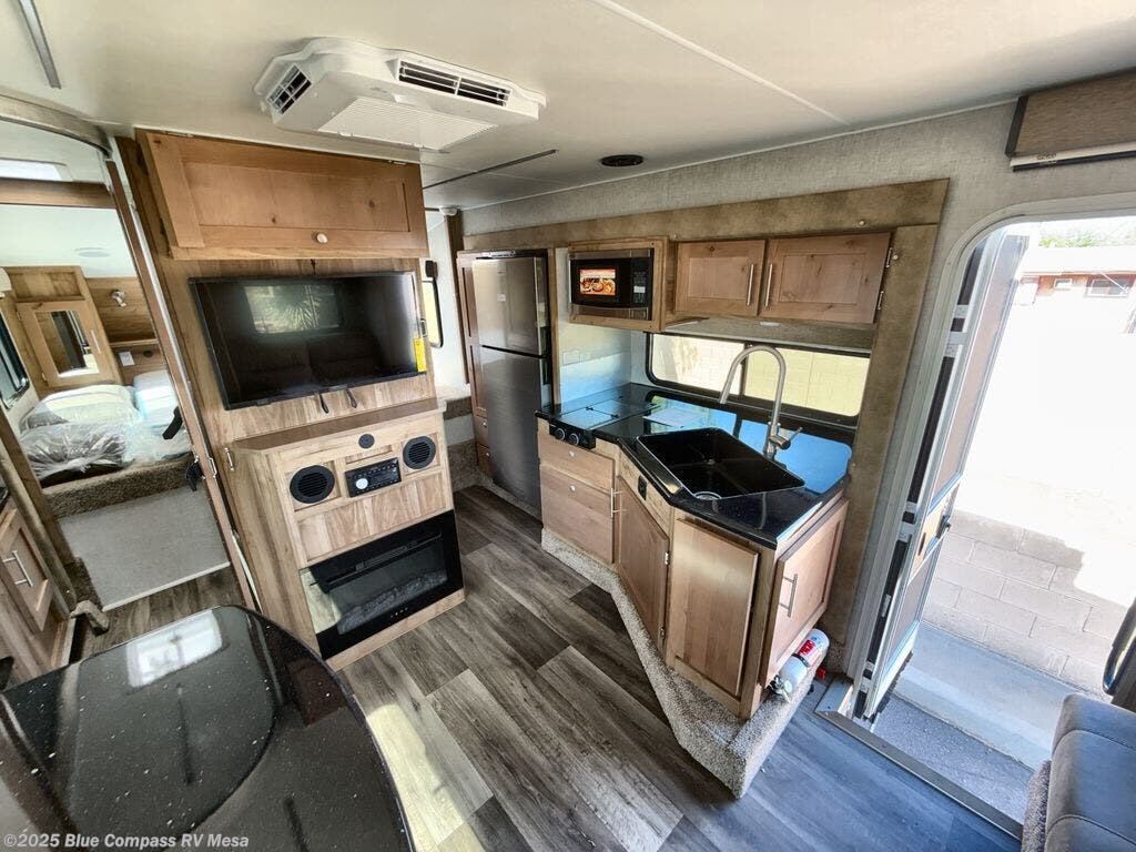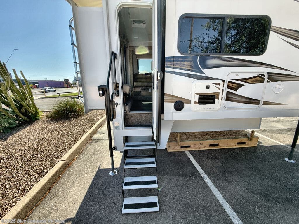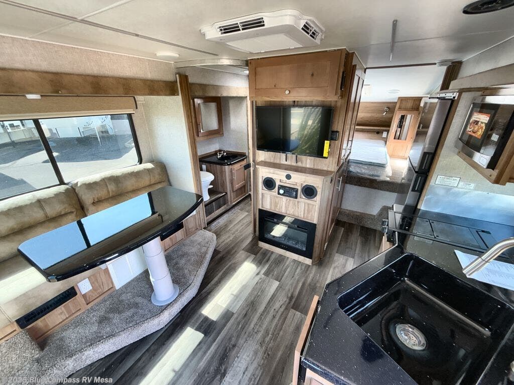 Luxury, convenience and outdoor adventure are just inside and around the corner in this truck camper! There is a queen bed or king option, dual wardrobes and dual entrances into the bedroom, and a second wardrobe for your clothes. You can dine, play games and work at the U-shaped dinette, plus relax on the sofa slide while watching your favorite shows on the flat screen TV above a fireplace for a cozy evening. The full bathroom will keep you refreshed, the pantry allows you to store lots of goodies, and the triple slides give you the interior space you are looking for.