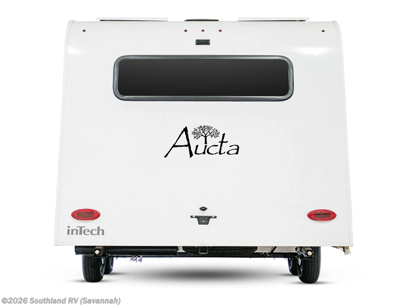 With any Aucta travel trailer by inTech RV you will enjoy creative interior spaces, luxury features, and smart storage spaces for a one-of-a-kind trailer. The one-piece fiberglass roof, all-aluminum cage frame, and Dexter torsion axle provide durable construction and smooth towing, and the fold-away double entry steps and power tongue jack will make set-up easier than ever. Inside, you'll find Infinity woven flooring, a large farmhouse sink, USB ports and 120V outlets, plenty of storage compartments, and MaxxAir vent fans to keep everything fresh. These models also include bubble foil insulation in the walls and ceiling, along with a 25K BTU furnace and a 15K BTU A/C so you can make memories year around!