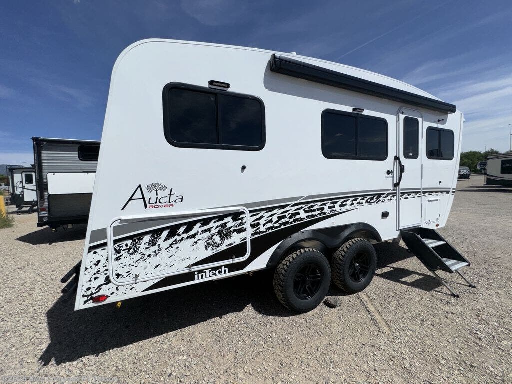 With any Aucta travel trailer by inTech RV you will enjoy creative interior spaces, luxury features, and smart storage spaces for a one-of-a-kind trailer. The one-piece fiberglass roof, all-aluminum cage frame, and Dexter torsion axle provide durable construction and smooth towing, and the fold-away double entry steps and power tongue jack will make set-up easier than ever. Inside, you'll find Infinity woven flooring, a large farmhouse sink, USB ports and 120V outlets, plenty of storage compartments, and MaxxAir vent fans to keep everything fresh. These models also include bubble foil insulation in the walls and ceiling, along with a 25K BTU furnace and a 15K BTU A/C so you can make memories year around!