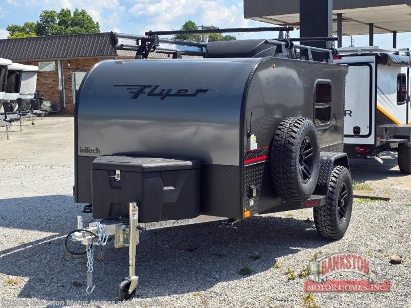 The inTech RV Flyer travel trailers and toy hauler expandables are ready for adventure whenever you are! With the all-aluminum, all-tube cage frame, the Flyer has been built with lightweight and long-lasting materials so that you can enjoy your unit for many, many years. The Flyer has a rugged design so that you can confidently explore new territory and go where traditional RVs cannot. The Flyer has a 2" rear receiver rated for 175 pounds which allows you to bring along your bikes, and the Bluetooth stereo has two speakers you can always have your best music playing. The optional roof rack will allow you to bring along kayaks, and there are more available options depending on the model you choose.