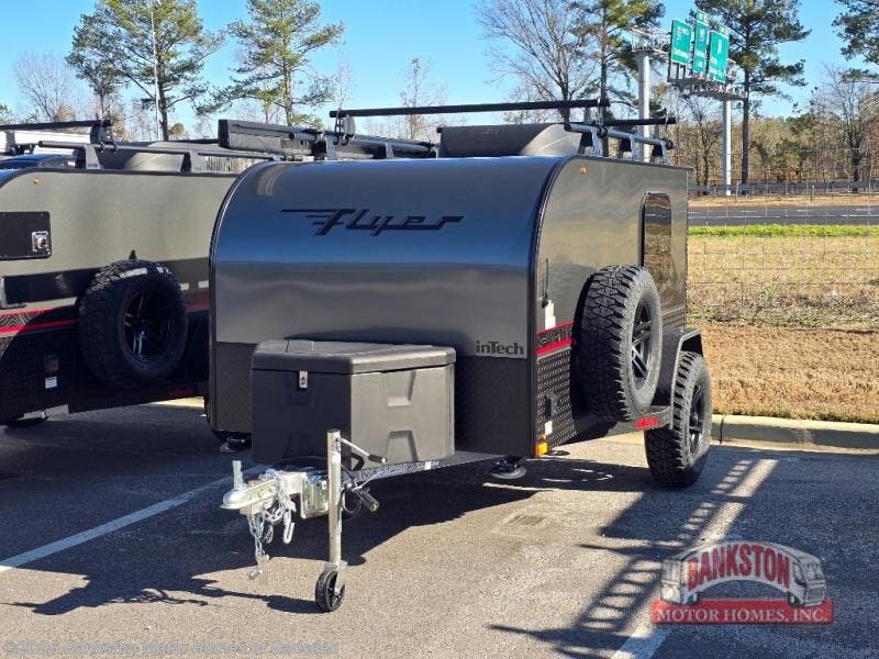 The inTech RV Flyer travel trailers and toy hauler expandables are ready for adventure whenever you are! With the all-aluminum, all-tube cage frame, the Flyer has been built with lightweight and long-lasting materials so that you can enjoy your unit for many, many years. The Flyer has a rugged design so that you can confidently explore new territory and go where traditional RVs cannot. The Flyer has a 2" rear receiver rated for 175 pounds which allows you to bring along your bikes, and the Bluetooth stereo has two speakers you can always have your best music playing. The optional roof rack will allow you to bring along kayaks, and there are more available options depending on the model you choose.