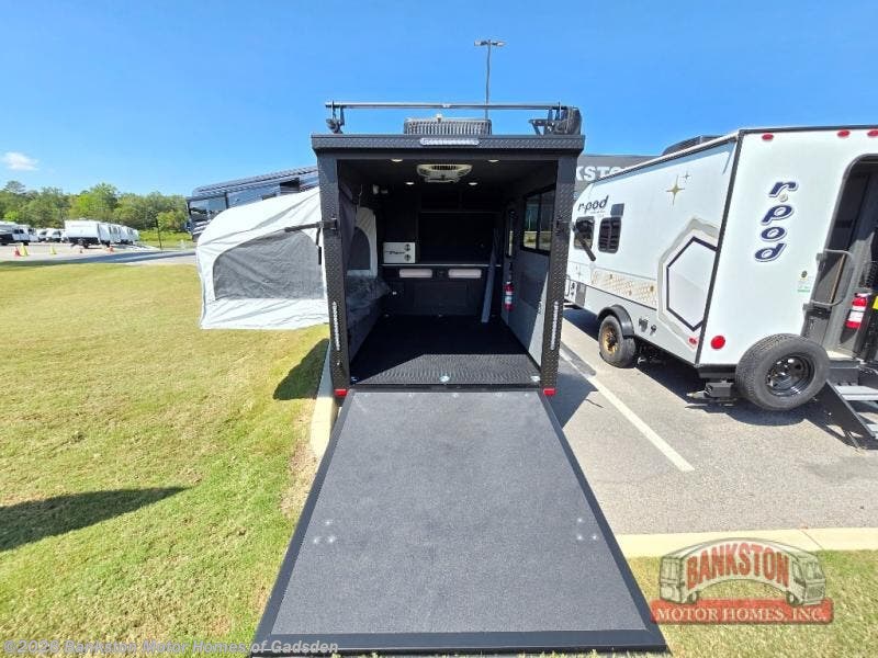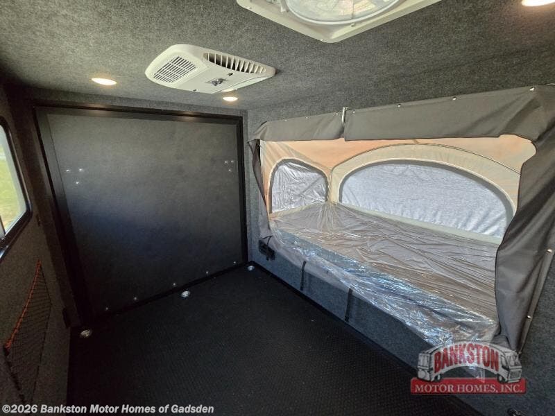 Not only is this Flyer toy hauler built to go where most traditional RVs cannot, but it is also built with a standard rear ramp or optional double rear doors, and six tie-down rings so that it can also serve as the perfect cargo transport too! The interior is spacious with its 46" x 81" tip-out bed, and if you add the second optional tip-out bed, you'll have an amazing amount of space on the inside. This expandable toy hauler is very functional, but you can make it even more enticing by adding optional Adventure Package that comes with an A/C, off-road tires, a roof rack, plus a slide out kitchen! This will allow you to cook wherever you choose to camp. The dry weight for this unit ranges from 1,580-2,110 LBS, the tongue weight ranges from 250-485 LBS, and the net carrying capacity ranges from 880-1,410 LBS.