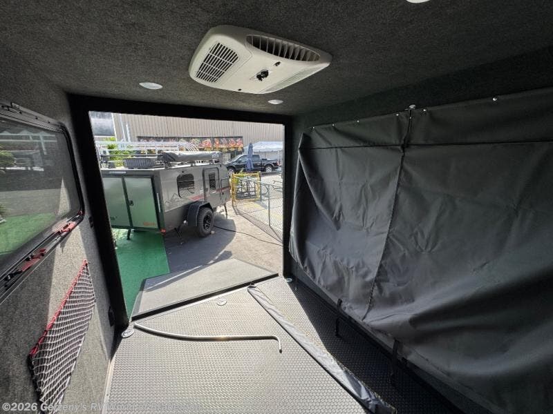 Not only is this Flyer toy hauler built to go where most traditional RVs cannot, but it is also built with a standard rear ramp or optional double rear doors, and six tie-down rings so that it can also serve as the perfect cargo transport too! The interior is spacious with its 46" x 81" tip-out bed, and if you add the second optional tip-out bed, you'll have an amazing amount of space on the inside. This expandable toy hauler is very functional, but you can make it even more enticing by adding optional Adventure Package that comes with an A/C, off-road tires, a roof rack, plus a slide out kitchen! This will allow you to cook wherever you choose to camp. The dry weight for this unit ranges from 1,580-2,110 LBS, the tongue weight ranges from 250-485 LBS, and the net carrying capacity ranges from 880-1,410 LBS.