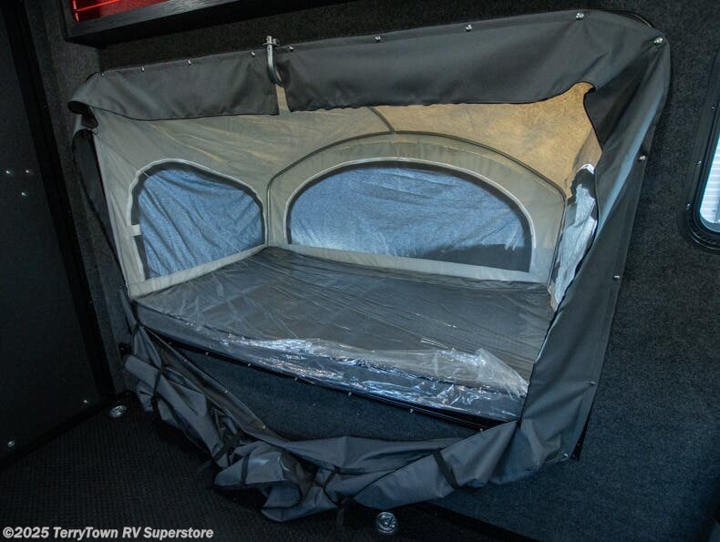 You asked for it and inTech RV delivered with this toy hauler expandable! You will enjoy some of the same features as the Discover model, but will also appreciate a wet bath in the Forge. There is a porcelain toilet, aluminum walls with a sealing exterior door so you don't need a shower curtain, storage space, and even a bath roof vent with an onboard switch! The kitchen includes everything you need to cook meals each day, including a two burner cooktop, a large farmhouse sink, and a spacious 8 cu.ft. 12V refrigerator! The 80" x 160" garage floor space features durable black coin flooring and is large enough to bring in most side-by-sides, plus there are tie-downs to keep your toys secure. For sleeping space, you'll find a tip-out bed and a standard sleeper sofa, and if you have more campers tagging along, you can add the optional drop-down bunk, or even bring your own air mattress! A few more stand-out features you'll love on the Forge are the on-demand LP water heater, the aluminum walk-on roof, tinted windows, and Airline Track sidewall tie-down area! The dry weight for this model ranges from 3,845 lbs. - 4,300 lbs., and the carrying capacity ranges from 2,700 lbs. - 3,155 lbs.