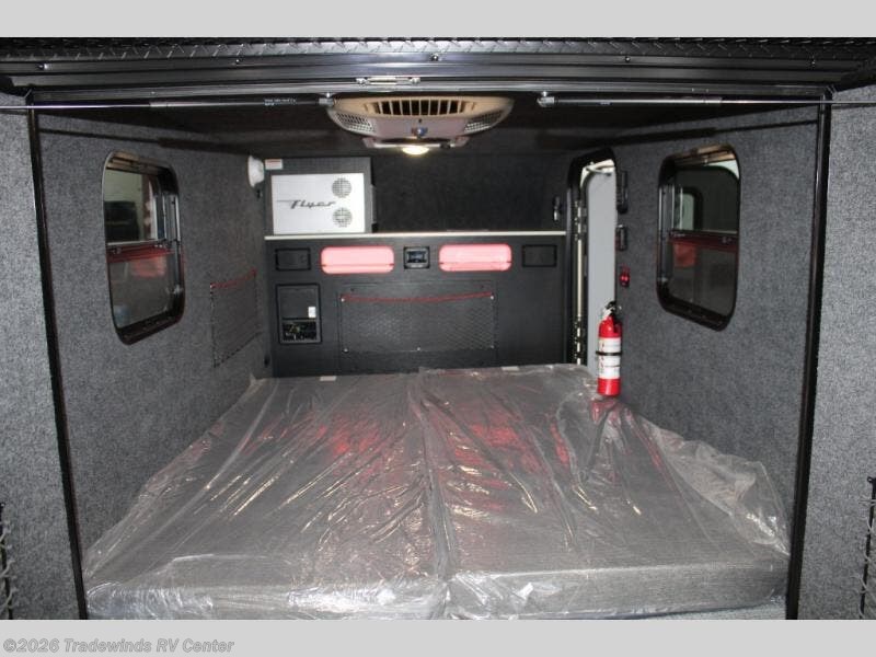 With this Flyer travel trailer, you have the freedom to tackle any adventure! This trailer has been built to be tough enough to explore all corners of the world. This trailer has a versatile interior that can be used for many different types of travels, and it has a 59" x 78" bed for a comfortable place to relax throughout the day or night. You might like to add the optional Adventure Package that includes off-road tires, a slide out kitchen, an A/C, plus a roof rack for kayaks! This trailer has a dry weight that ranges from 1,195-1,690 LBS, a tongue weight that ranges from 240-395 LBS, and a net carrying capacity that ranges from 510-1,005 LBS.