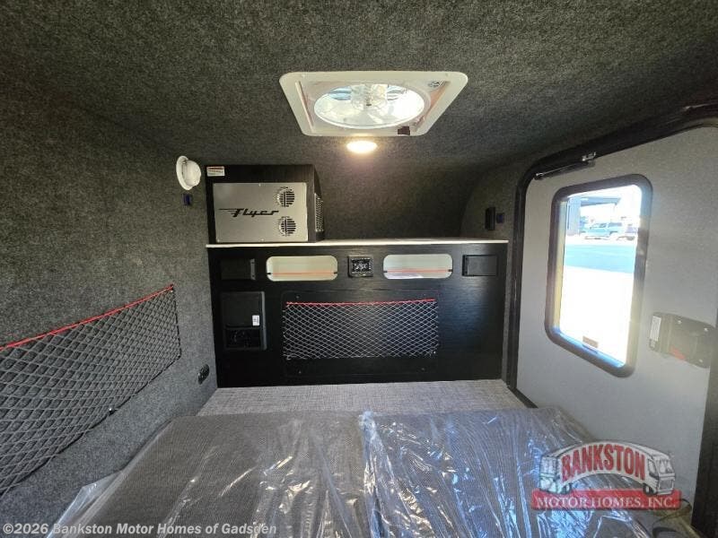 With this Flyer travel trailer, you have the freedom to tackle any adventure! This trailer has been built to be tough enough to explore all corners of the world. This trailer has a versatile interior that can be used for many different types of travels, and it has a 59" x 78" bed for a comfortable place to relax throughout the day or night. You might like to add the optional Adventure Package that includes off-road tires, a slide out kitchen, an A/C, plus a roof rack for kayaks! This trailer has a dry weight that ranges from 1,195-1,690 LBS, a tongue weight that ranges from 240-395 LBS, and a net carrying capacity that ranges from 510-1,005 LBS.