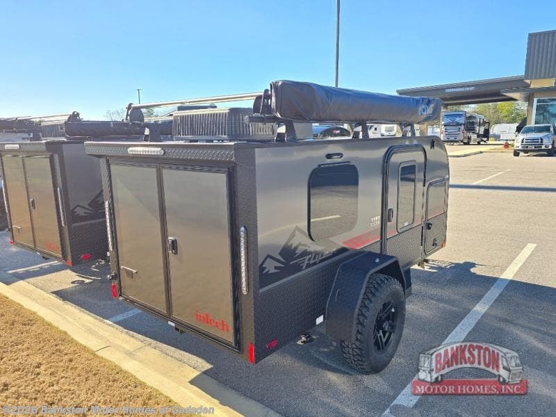 The inTech RV Flyer travel trailers and toy hauler expandables are ready for adventure whenever you are! With the all-aluminum, all-tube cage frame, the Flyer has been built with lightweight and long-lasting materials so that you can enjoy your unit for many, many years. The Flyer has a rugged design so that you can confidently explore new territory and go where traditional RVs cannot. The Flyer has a 2" rear receiver rated for 175 pounds which allows you to bring along your bikes, and the Bluetooth stereo has two speakers you can always have your best music playing. The optional roof rack will allow you to bring along kayaks, and there are more available options depending on the model you choose.