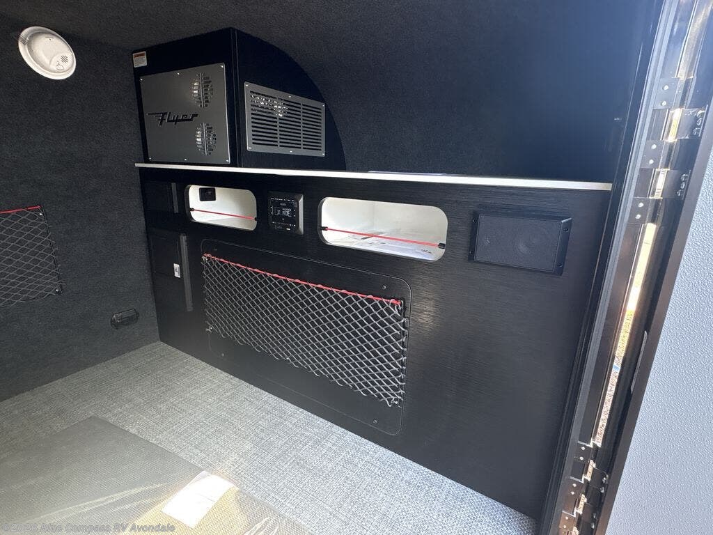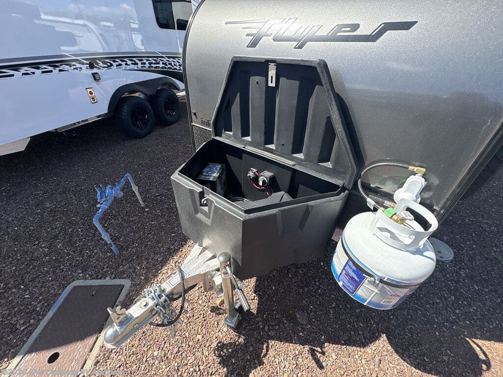 With this Flyer travel trailer, you have the freedom to tackle any adventure! This trailer has been built to be tough enough to explore all corners of the world. This trailer has a versatile interior that can be used for many different types of travels, and it has a 59" x 78" bed for a comfortable place to relax throughout the day or night. You might like to add the optional Adventure Package that includes off-road tires, a slide out kitchen, an A/C, plus a roof rack for kayaks! This trailer has a dry weight that ranges from 1,195-1,690 LBS, a tongue weight that ranges from 240-395 LBS, and a net carrying capacity that ranges from 510-1,005 LBS.