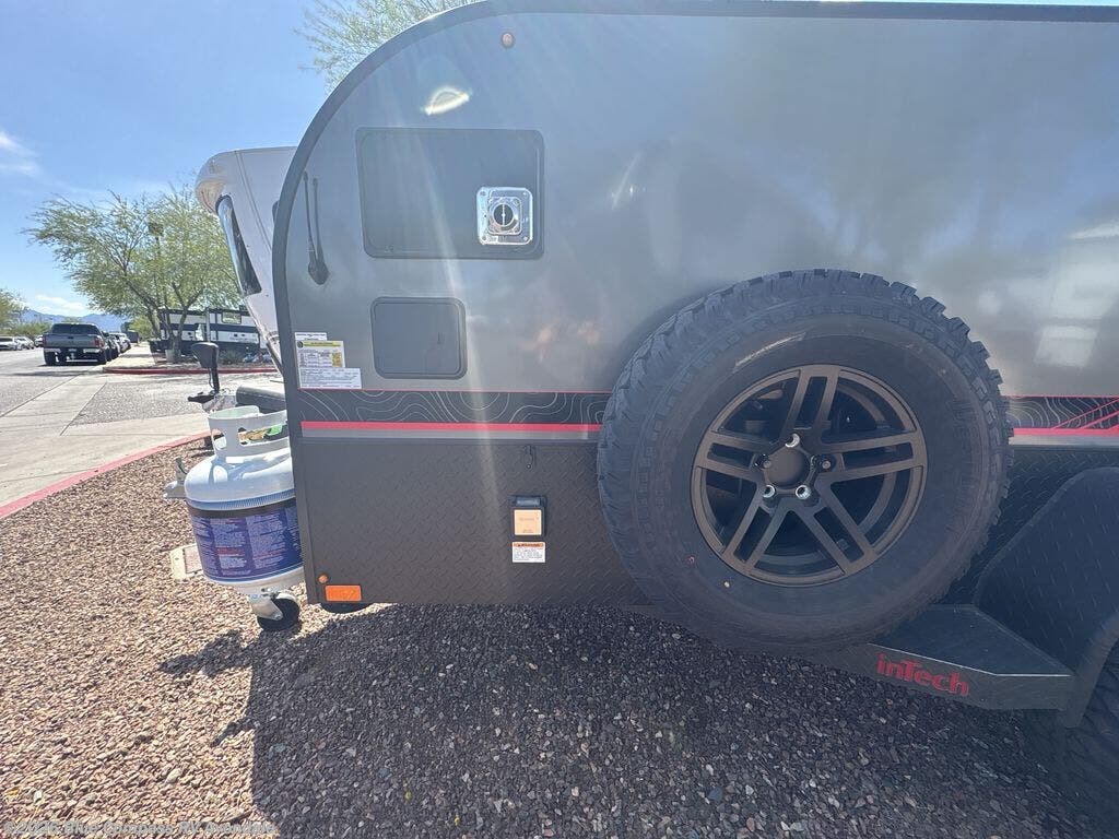 The inTech RV Flyer travel trailers and toy hauler expandables are ready for adventure whenever you are! With the all-aluminum, all-tube cage frame, the Flyer has been built with lightweight and long-lasting materials so that you can enjoy your unit for many, many years. The Flyer has a rugged design so that you can confidently explore new territory and go where traditional RVs cannot. The Flyer has a 2" rear receiver rated for 175 pounds which allows you to bring along your bikes, and the Bluetooth stereo has two speakers you can always have your best music playing. The optional roof rack will allow you to bring along kayaks, and there are more available options depending on the model you choose.