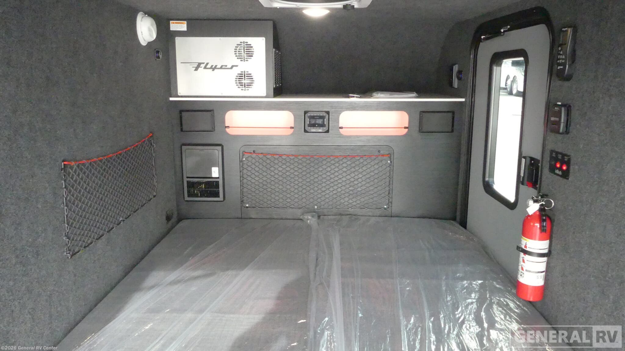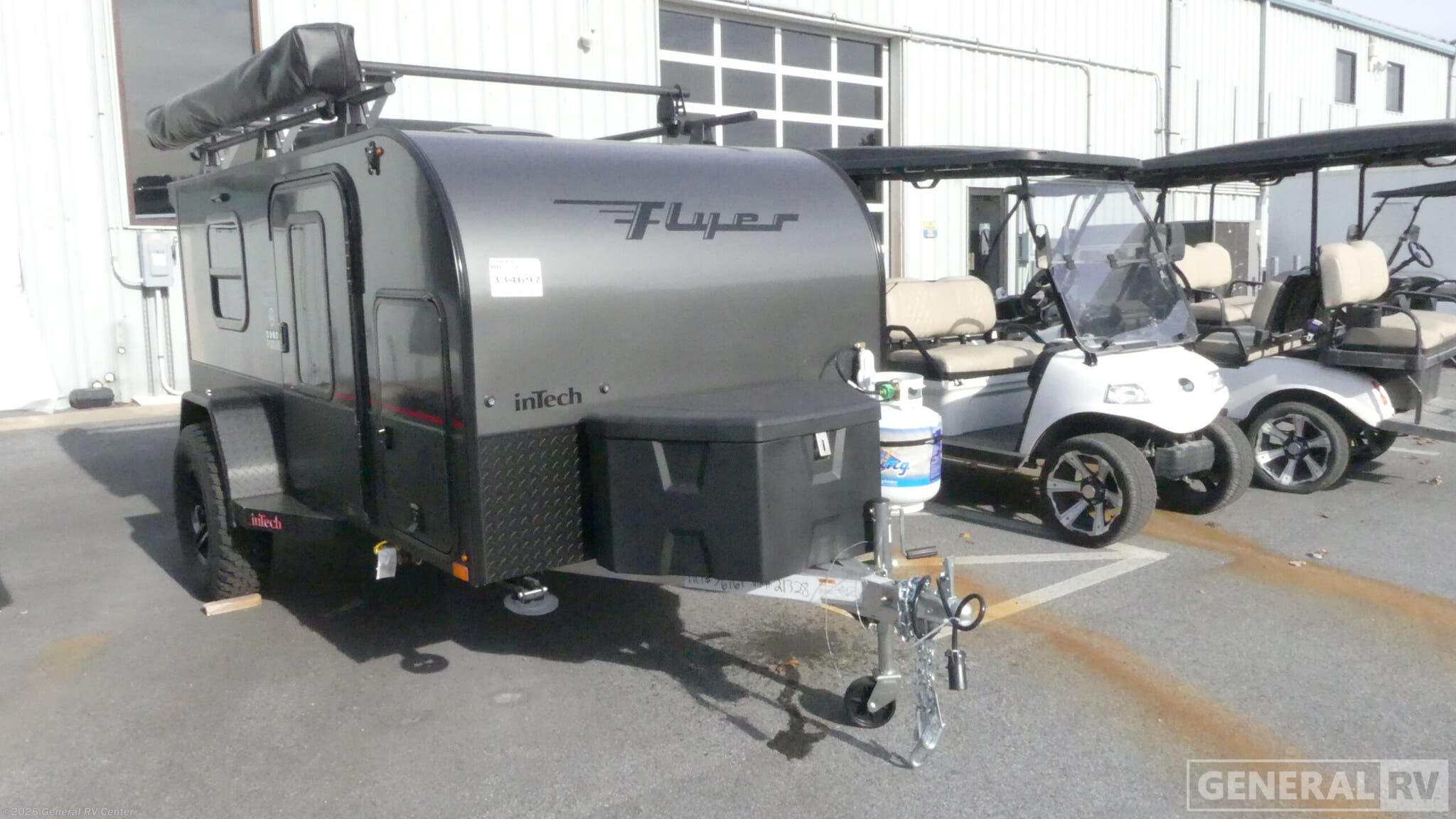 inTech RV Flyer travel trailer Pursue highlights: Rear Doors Side Entry Door 59" x 78" Bed Front Storage Cabinet LED Dome Lights With this Flyer travel trailer, you have the freedom to tackle any adventure! This trailer has been built to be tough enough to explore all corners of the world. This trailer has a versatile interior that can be used for many different types of travels, and it has a 59" x 78" bed for a comfortable place to relax throughout the day or night. You might like to add the optional Adventure Package that includes off-road tires, a slide out kitchen, an A/C, plus a roof rack for kayaks! This trailer has a dry weight that ranges from 1,195-1,690 LBS, a tongue weight that ranges from 240-395 LBS, and a net carrying capacity that ranges from 510-1,005 LBS. The inTech RV Flyer travel trailers and toy hauler expandables are ready for adventure whenever you are! With the all-aluminum, all-tube cage frame, the Flyer has been built with lightweight and long-lasting materials so that you can enjoy your unit for many, many years. The Flyer has a rugged design so that you can confidently explore new territory and go where traditional RVs cannot. The Flyer has a 2" rear receiver rated for 175 pounds which allows you to bring along your bikes, and the Bluetooth stereo has two speakers you can always have your best music playing.