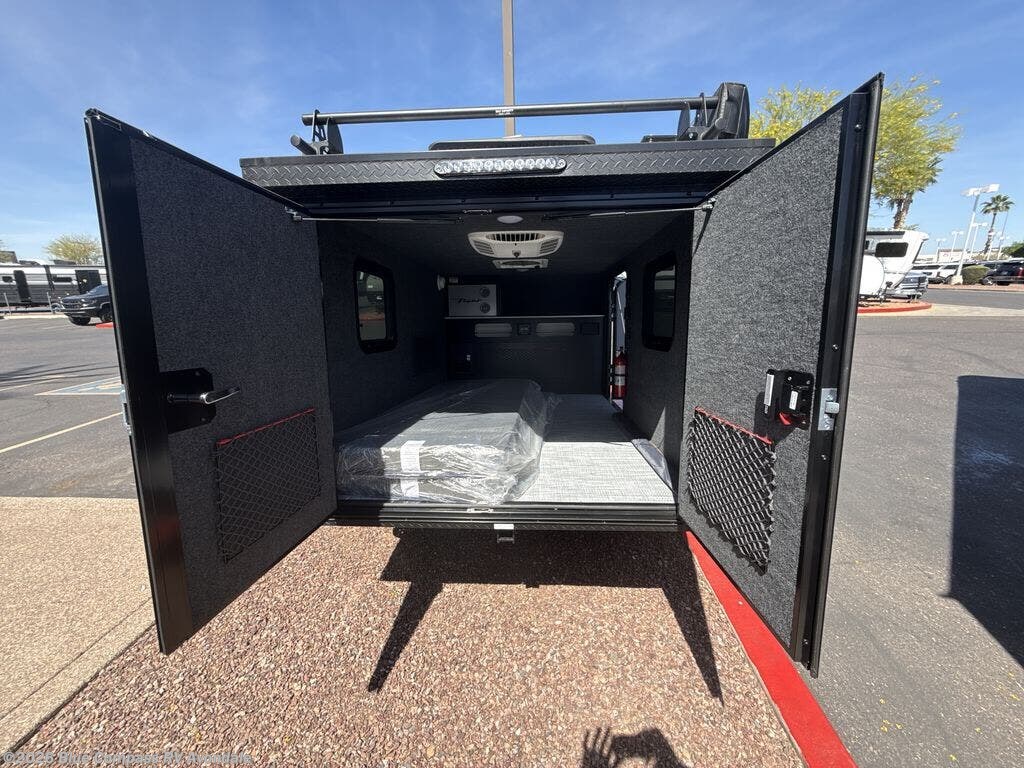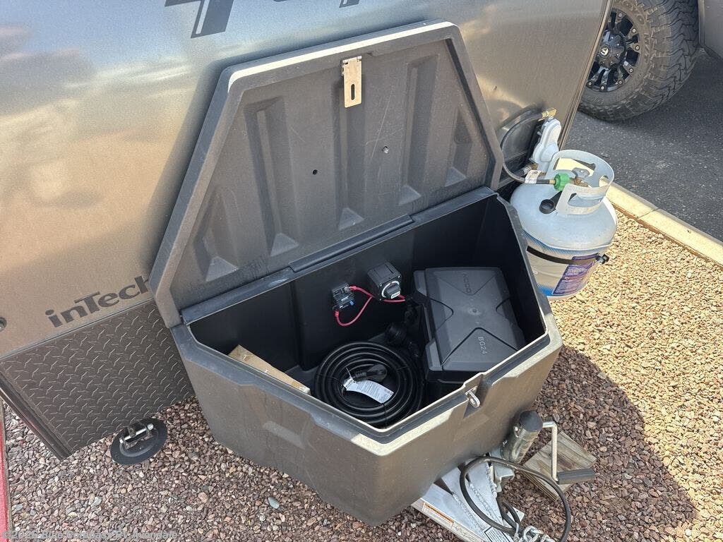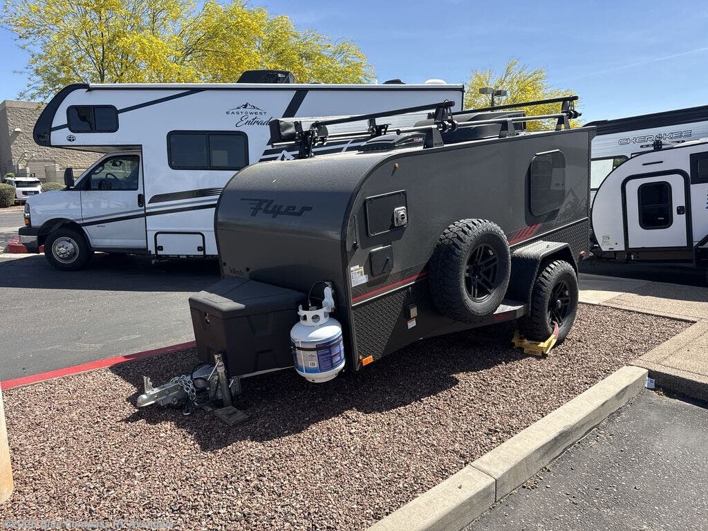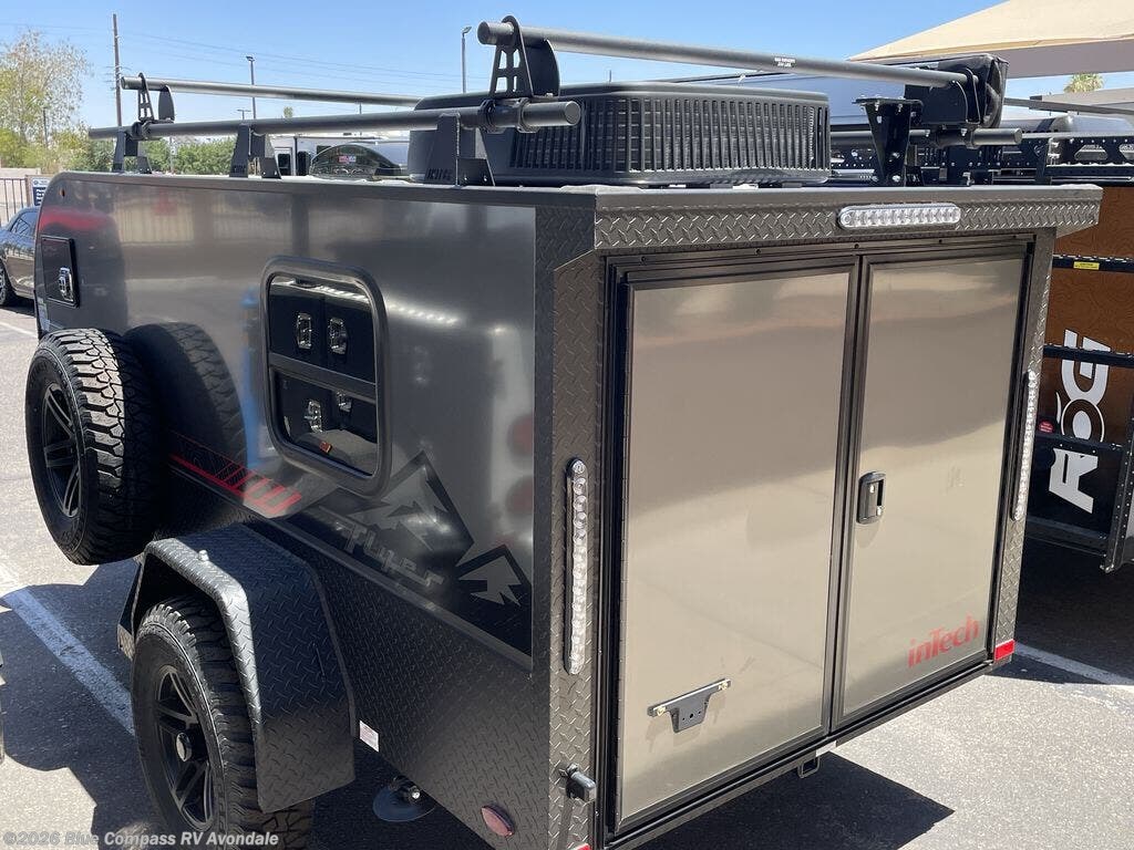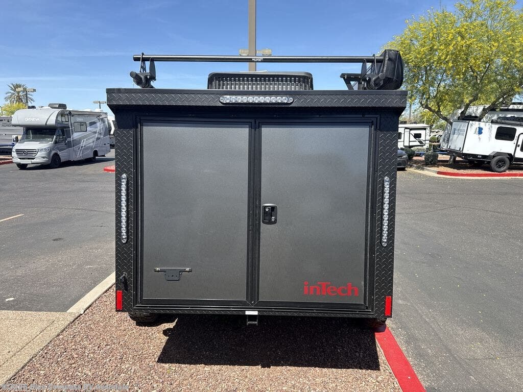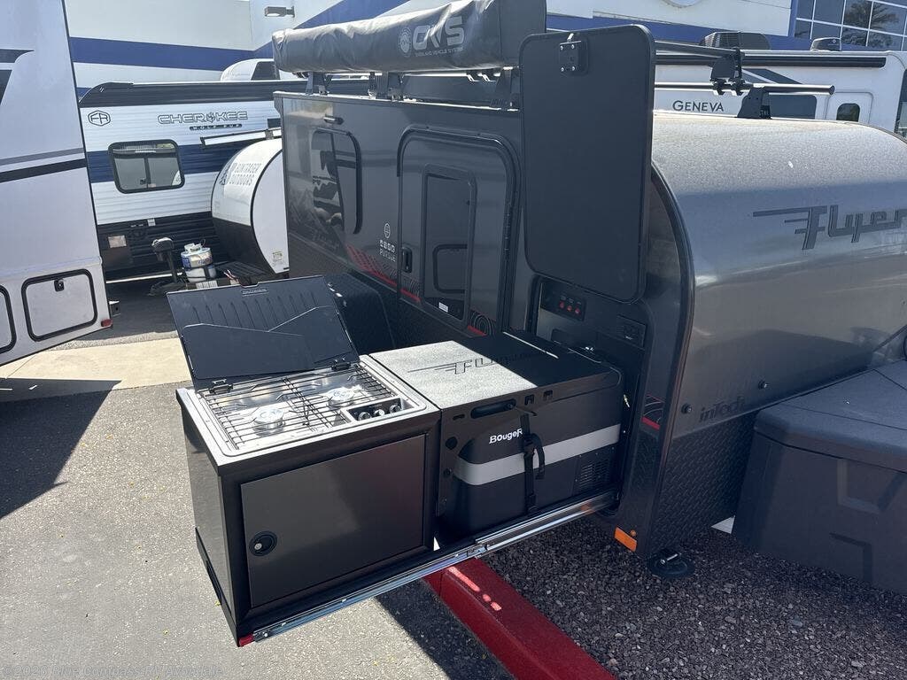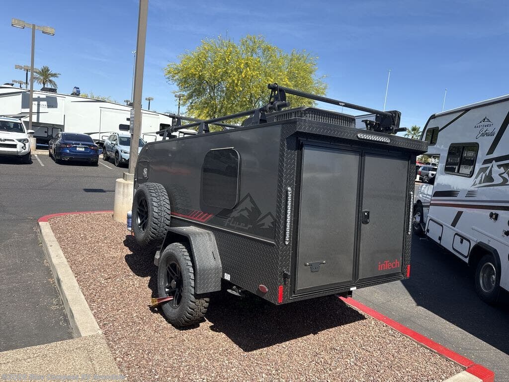 The inTech RV Flyer travel trailers and toy hauler expandables are ready for adventure whenever you are! With the all-aluminum, all-tube cage frame, the Flyer has been built with lightweight and long-lasting materials so that you can enjoy your unit for many, many years. The Flyer has a rugged design so that you can confidently explore new territory and go where traditional RVs cannot. The Flyer has a 2" rear receiver rated for 175 pounds which allows you to bring along your bikes, and the Bluetooth stereo has two speakers you can always have your best music playing. The optional roof rack will allow you to bring along kayaks, and there are more available options depending on the model you choose.