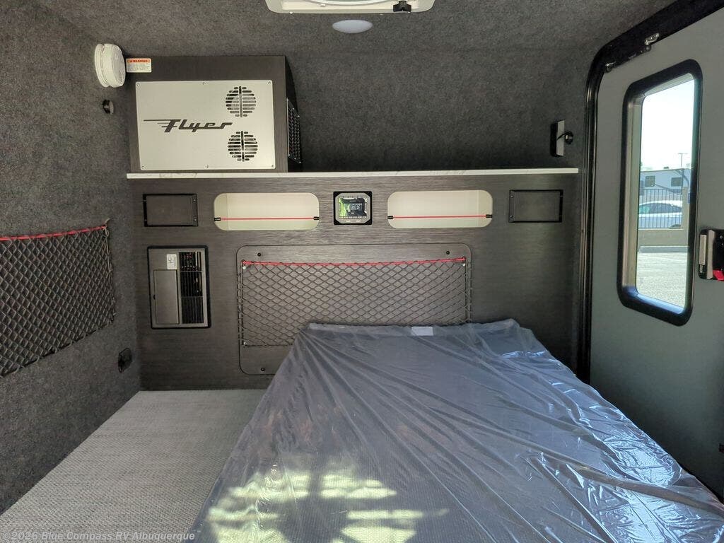 With this Flyer travel trailer, you have the freedom to tackle any adventure! This trailer has been built to be tough enough to explore all corners of the world. This trailer has a versatile interior that can be used for many different types of travels, and it has a 59" x 78" bed for a comfortable place to relax throughout the day or night. You might like to add the optional Adventure Package that includes off-road tires, a slide out kitchen, an A/C, plus a roof rack for kayaks! This trailer has a dry weight that ranges from 1,195-1,690 LBS, a tongue weight that ranges from 240-395 LBS, and a net carrying capacity that ranges from 510-1,005 LBS.