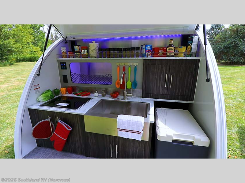 When your adventure is all about the outdoors, but you would rather sleep on a comfortable bed instead of an air mattress, this Luna Base model teardrop trailer is precisely what you need! The 260-270 lbs. tongue weight and the 550-625 lbs. carrying capacity allow you to hitch up and head out without a worry. With the full kitchen that has been included in the hatch of this model, you have the ability to prepare and enjoy a delicious meal outdoors that isn't hot dogs or s'mores, and the kitchen storage allows you to keep all of your favorite snacks and spices handy while you cook. Every morning you will love waking up to the beautiful and picturesque views of the lake or mountains coming through the large tempered glass panoramic windshield, and when you find yourself camping out in the middle of summer, you will enjoy staying indoors a little bit longer because of the 8,000 BTU air conditioner that will cool you down.