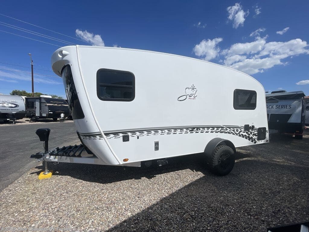 With any Sol travel trailer by inTech RV you will find strong, durable construction consisting of lightweight aluminum that is easier to tow and resists rust, water, and dents. The Tilt-Forward Design creates more space inside so you can stretch out, and the panoramic windshield gives a great view of the mountains, ocean, or forest! The elegant interior features tinted windows with shades, Infinity woven flooring, and a stainless steel cooktop and microwave. You will stay comfortable year around since these models include a 15K BTU A/C and a 16K BTU furnace. The optional Rover Package can also be added that features rugged decals, off-road tires with a 3" lift, two different color choices to choose from, plus more!