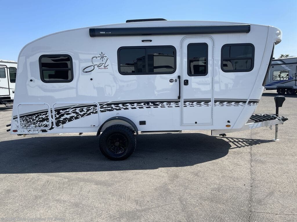 With any Sol travel trailer by inTech RV you will find strong, durable construction consisting of lightweight aluminum that is easier to tow and resists rust, water, and dents. The Tilt-Forward Design creates more space inside so you can stretch out, and the panoramic windshield gives a great view of the mountains, ocean, or forest! The elegant interior features tinted windows with shades, Infinity woven flooring, and a stainless steel cooktop and microwave. You will stay comfortable year around since these models include a 15K BTU A/C and a 16K BTU furnace. The optional Rover Package can also be added that features rugged decals, off-road tires with a 3" lift, two different color choices to choose from, plus more!