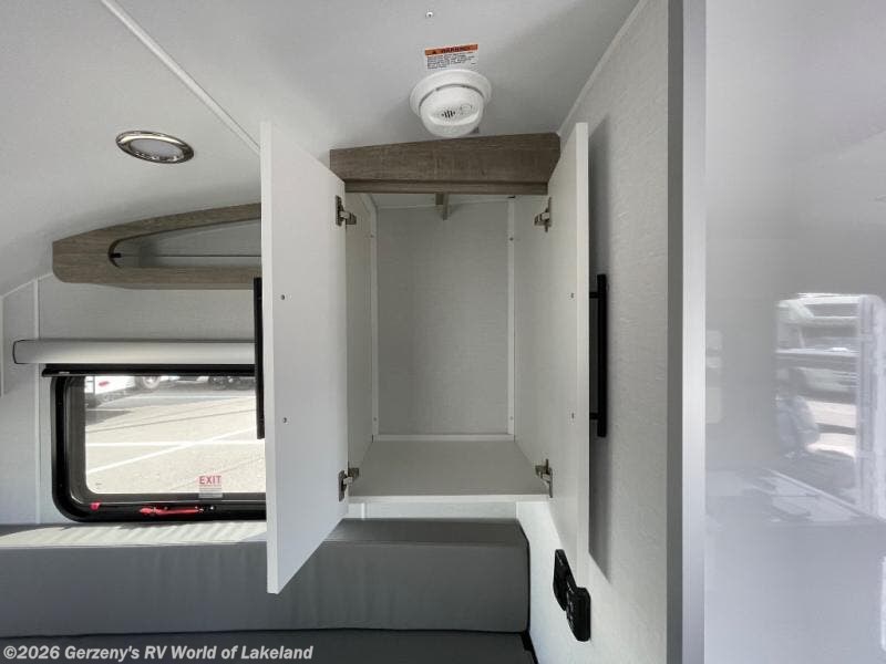 This travel trailer is ready to hit the great outdoors whenever you are! You and your loved one will have a front convertible U-shaped dinette to enjoy meals at and sleep on at night. And the rear twin beds include a filler if you want to convert them into one king-size bed In the morning. You can also prepare eggs and bacon on the two burner cooktop before heading out for the day. If you've chosen the optional 10' awning, you may not wander off too far from your trailer. This model also includes a wet bath with a porcelain toilet and a roof vent to eliminate any unwanted steam. This model has a dry weight that ranges from 3,540-3,970 lbs., a tongue weight between 540-575 lbs., and a carrying capacity between 820-1210 lbs.