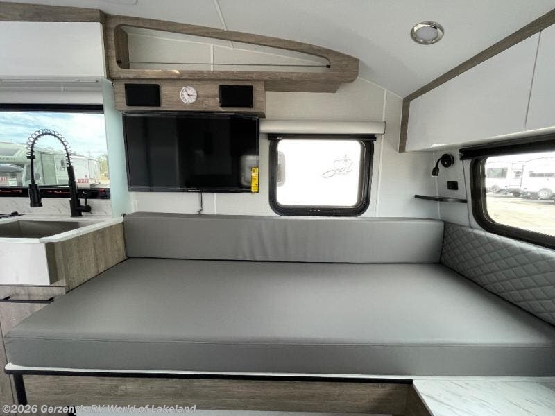 With any Sol travel trailer by inTech RV you will find strong, durable construction consisting of lightweight aluminum that is easier to tow and resists rust, water, and dents. The Tilt-Forward Design creates more space inside so you can stretch out, and the panoramic windshield gives a great view of the mountains, ocean, or forest! The elegant interior features tinted windows with shades, Infinity woven flooring, and a stainless steel cooktop and microwave. You will stay comfortable year around since these models include a 15K BTU A/C and a 16K BTU furnace. The optional Rover Package can also be added that features rugged decals, off-road tires with a 3" lift, two different color choices to choose from, plus more!