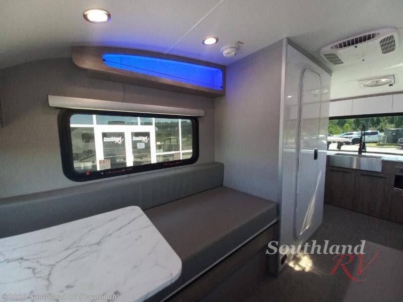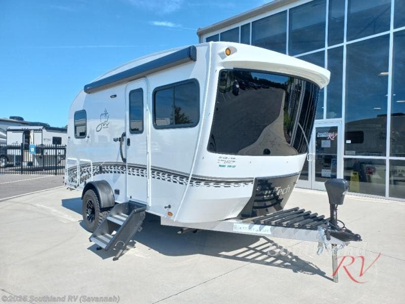 With any Sol travel trailer by inTech RV you will find strong, durable construction consisting of lightweight aluminum that is easier to tow and resists rust, water, and dents. The Tilt-Forward Design creates more space inside so you can stretch out, and the panoramic windshield gives a great view of the mountains, ocean, or forest! The elegant interior features tinted windows with shades, Infinity woven flooring, and a stainless steel cooktop and microwave. You will stay comfortable year around since these models include a 15K BTU A/C and a 16K BTU furnace.