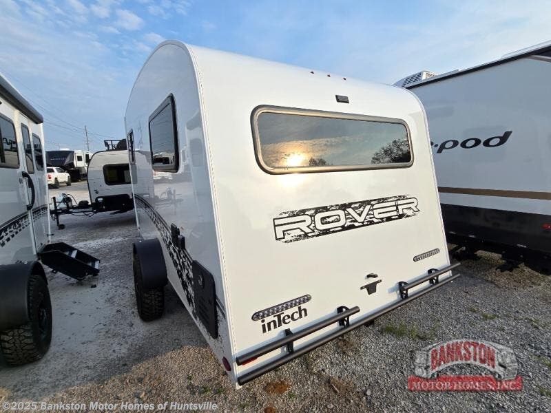 With any Sol travel trailer by inTech RV you will find strong, durable construction consisting of lightweight aluminum that is easier to tow and resists rust, water, and dents. The Tilt-Forward Design creates more space inside so you can stretch out, and the panoramic windshield gives a great view of the mountains, ocean, or forest! The elegant interior features tinted windows with shades, Infinity woven flooring, and a stainless steel cooktop and microwave. You will stay comfortable year around since these models include a 15K BTU A/C and a 16K BTU furnace. The optional Rover Package can also be added that features rugged decals, off-road tires with a 3" lift, two different color choices to choose from, plus more!