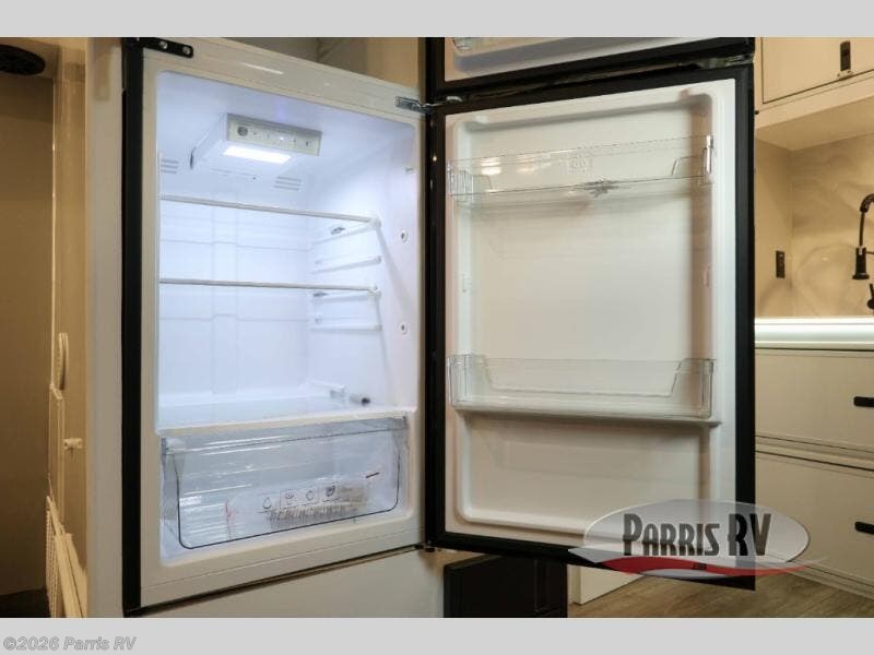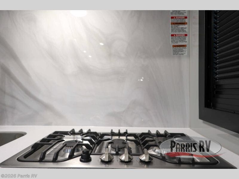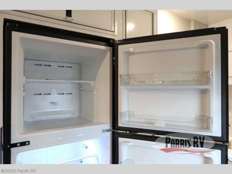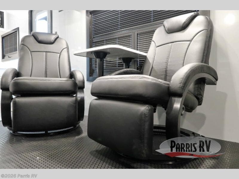 This 30' 2" toy hauler is ready for adventure when you are! The front of the unit is shared with the full bath that includes a shower/tub, toilet and sink, plus the kitchen with a three-burner gas cooktop, a sink, and overhead storage! A 12V refrigerator, pantry, and closet provide even more storage space for food, riding gear and more. There are two lounge chairs with a table in between where you can enjoy your coffee at each morning, and a drop-down queen bed in the garage provides a cozy place to sleep each night!